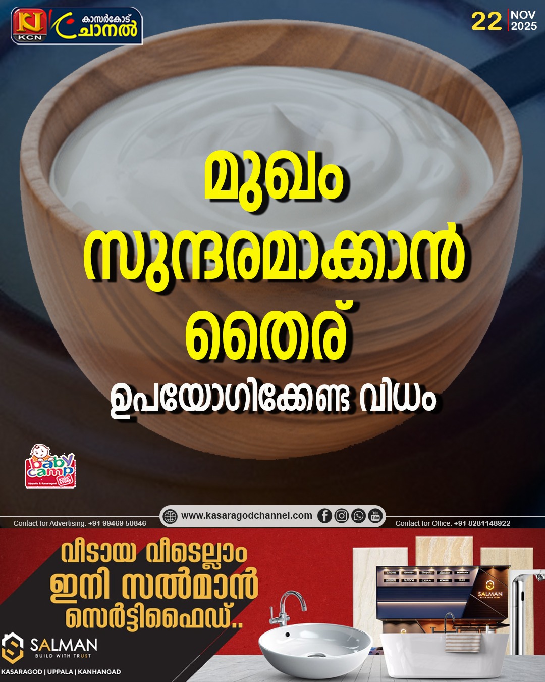 തൈരിലെ അവശ്യ കൊഴുപ്പുകള്, പ്രോട്ടീന്, വിറ്റാമിനുകള്, ധാതുക്കള് എന്നിവ ചര്മ്മത്തെ പോഷിപ്പിക്കാനും ആരോഗ്യകരമായി നിലനിര്ത്താനും സഹായിക്കുന്നു. ചര്മ്മ ആരോഗ്യം നിലനിര്ത്തുന്നു. തൈരില് സമ്പുഷ്ടമായി അടങ്ങിയിരിക്കുന്ന കൊഴുപ്പ് ചര്മ്മത്തിലെ ഈര്പ്പം നിലനിര്ത്തുവാന് സഹായിക്കും. ഇത് വളരെനേരം ചര്മ്മത്തില് ജലാംശം നിലനിര്ത്തുന്നു. ചര്മ്മത്തെ സംരക്ഷിക്കാന് തൈര് ഉപയോ?ഗിക്കേണ്ട രീതിയെ കുറിച്ചാണ് ഇനി പറയുന്നത്..