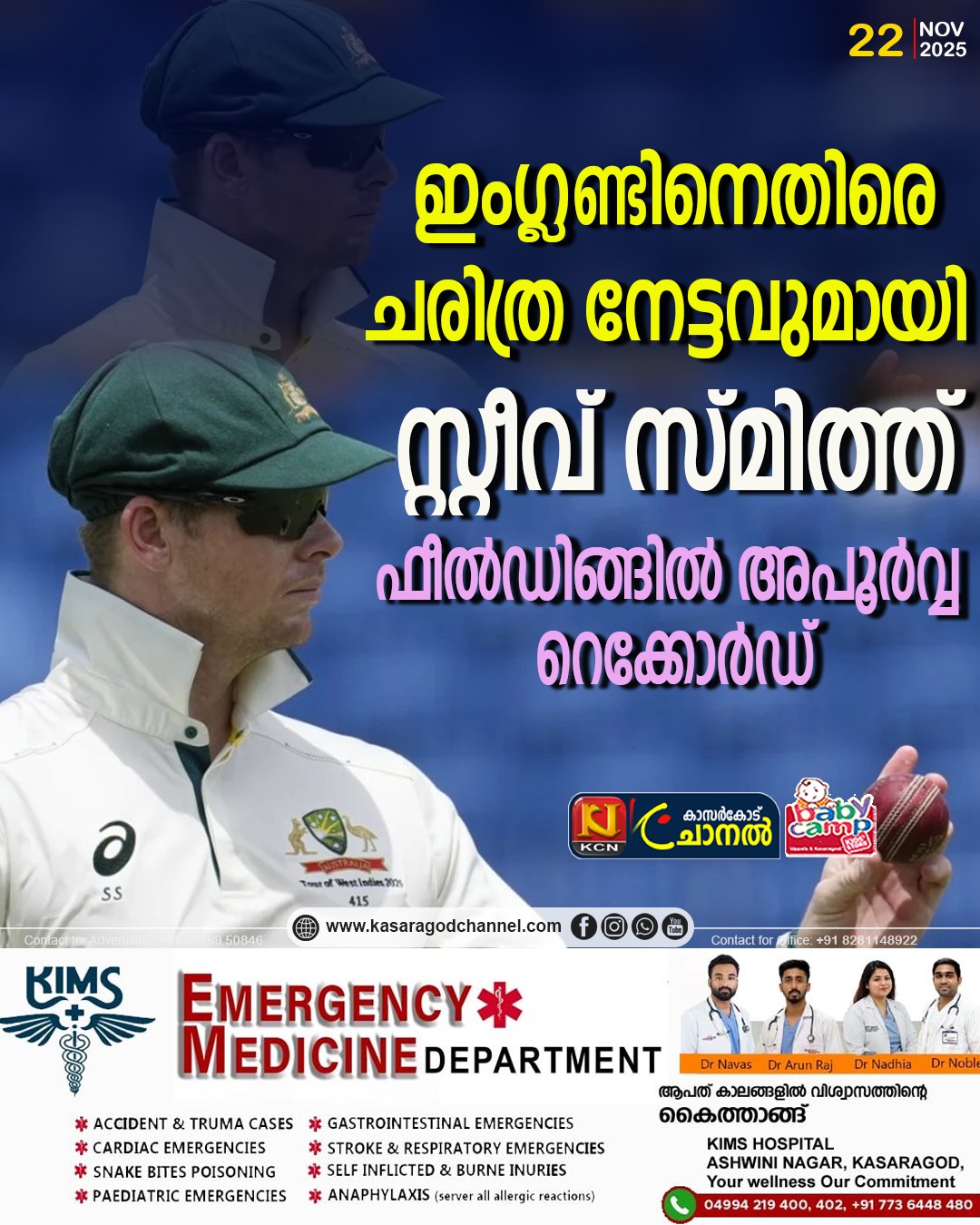 ആഷസ് ക്രിക്കറ്റ് പരമ്പരയിലെ ഒന്നാം ടെസ്റ്റിനിടെ അപൂര്വ്വ നേട്ടവുമായി ഓസ്ട്രേലിയന് താരം സ്റ്റീവ് സ്മിത്ത്. ബാറ്റുകൊണ്ടല്ല ഫീല്ഡിങ്ങിലാണ് സ്മിത്ത് നേട്ടം കുറിച്ചിരിക്കുന്നത്. ടെസ്റ്റ് ക്രിക്കറ്റിലെ ഒരു എതിരാളിക്കെതിരെ ഏറ്റവും കൂടുതല് ക്യാച്ചെന്ന നേട്ടത്തില് സ്റ്റീവ് സ്മിത്ത് മുന് ഓസ്ട്രേലിയന് താരം ഗ്രെയ്ഗ് ചാപ്പലിനൊപ്പമെത്തി. ഇരുതാരങ്ങളും ഇംഗ്ലണ്ടിനെതിരെ 61 ക്യാച്ചുകള് സ്വന്തമാക്കിയിട്ടുണ്ട്. ഇംഗ്ലണ്ട് താരം ജൊഫ്ര ആര്ച്ചറുടെ ക്യാച്ചെടുത്താണ് സ്മിത്ത് ചരിത്രം കുറിച്ചത്.