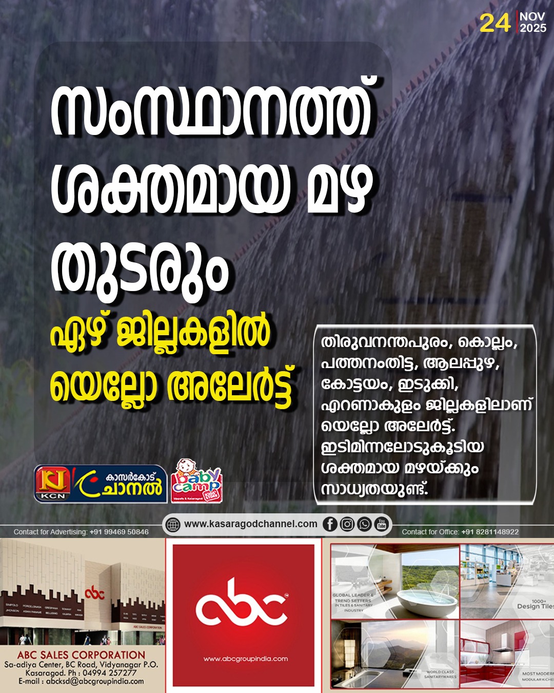 ശക്തമായ കാറ്റിനെ നേരിടാനുള്ള പൊതുജാഗ്രതാ നിര്ദേശങ്ങള് https://sdma.kerala.gov.in/windwarning/ എന്ന ലിങ്കില് ലഭ്യമാണ്.