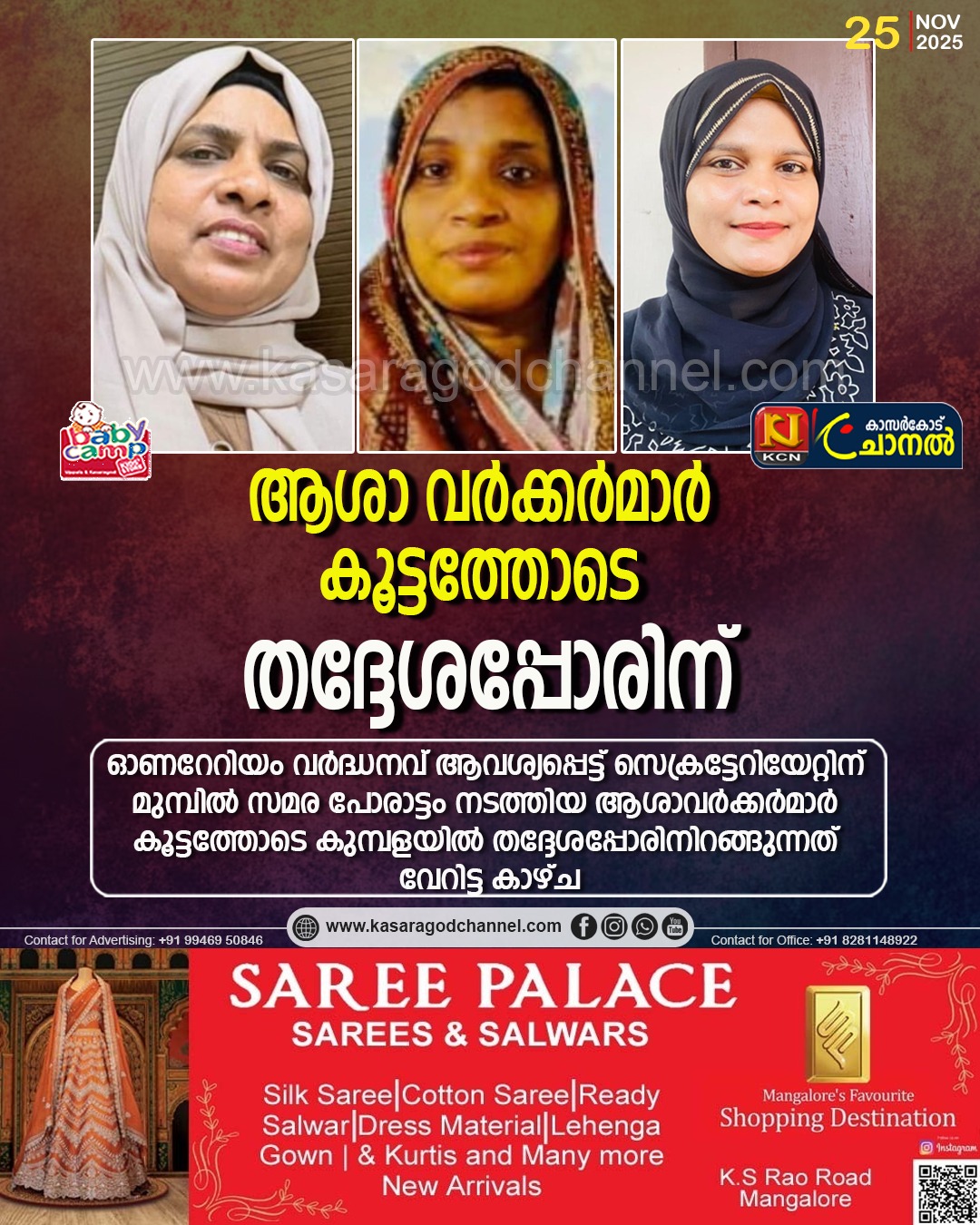 കുമ്പള: ഓണറേറിയം വര്ദ്ധനവ് ആവശ്യപ്പെട്ട് സെക്രട്ടേറിയേറ്റിന് മുമ്പില് സമര പോരാട്ടം നടത്തിയ ആശാവര്ക്കര്മാര് കൂട്ടത്തോടെ കുമ്പളയില് തദ്ദേശപ്പോരിനിറങ്ങുന്നത് വേറിട്ട കാഴ്ച.