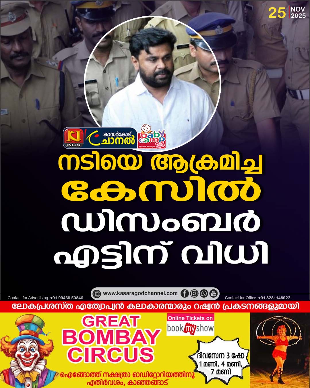 കൊച്ചി: കൊച്ചിയില് നടിയെ ആക്രമിച്ച കേസില് ഡിസംബര് 8 ന് കോടതി വിധി പറയും. എല്ലാ പ്രതികളും ഹാജരാകണം. എറണാകുളം പ്രിന്സിപ്പല് സെഷന്സ് കോടതിയിലാണ് അന്തിമ വാദം നടന്നത്. കഴിഞ്ഞ ഏപ്രിലില് പ്രൊസിക്യൂഷന്റെയും പ്രതിഭാഗത്തിന്റെയും വാദം പൂര്ത്തിയായിരുന്നു. ഇതിന് ശേഷം 27 തവണയാണ് വാദത്തില് വ്യക്തത വരുത്തുന്നതിനായി കേസ് വിചാരണക്കോടതി മാറ്റിവെച്ചത്.