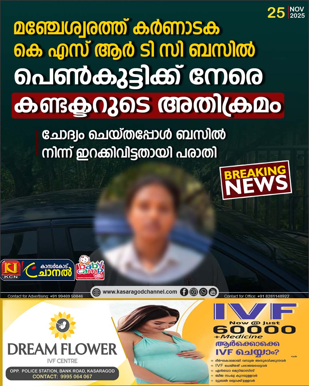 തനിക്ക് നേരിട്ട ദുരനുഭവം വിവരിച്ച് പെണ്കുട്ടിക്ക് മഞ്ചേശ്വരം പോലീസില് പാരാതി നല്കി..കാസര്കോട്ട് നിന്നുമുള്പ്പെടെ അതിര്ത്തി പ്രദേശത്ത് നിന്നും നിരവധി പെണ്കുട്ടികളാണ് മംഗ്ളൂരുവിലെ വിദ്യാഭ്യാസ സ്ഥാപനങ്ങളില് പഠിക്കുന്നത്…കര്ണാടക കെഎസ് ആര്ടിസി ബസുകളെയാണ് മിക്കവരും മംഗ്ളൂരുവിലെത്തുവാന് ആശ്രയിക്കുന്നത്. ഇത്തരത്തില് ബസുകളില് പോകുന്ന പെണ്കുട്ടികള്ക്ക് നേരെ കണ്ടക്ടറില് നിന്നു തന്നെ മോശം അനുഭവമുണ്ടാകുന്നത് രക്ഷിതാക്കള ആശങ്കയിലാഴ്ത്തുന്നതാണ്…സംഭവം വലിയ ചര്ച്ചയായതോടെ മംഗാലാപുരത്തേക്കും തിരിച്ചുമുള്ള ബസുകളില് പെണ്കുട്ടികളുടെ സുരക്ഷ ഉറപ്പാക്കുവാന് നടപടി സ്വീകരിക്കണമെന്ന ആവശ്യവും ഉയര്ന്നിട്ടുണ്ട്..