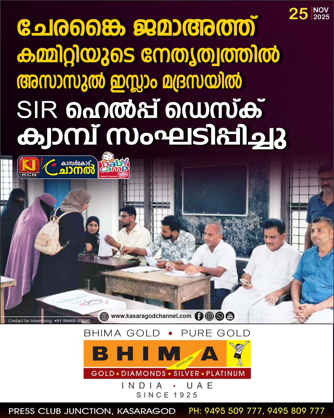 ചേരങ്കൈ ജമാഅത്ത് കമ്മിറ്റിയുടെ നേതൃത്വത്തില് അസാസുല് ഇസ്ലാം മദ്രസയില് SIR ഹെല്പ്പ് ഡെസ്ക് ക്യാമ്പ് സംഘടിപ്പിച്ചു