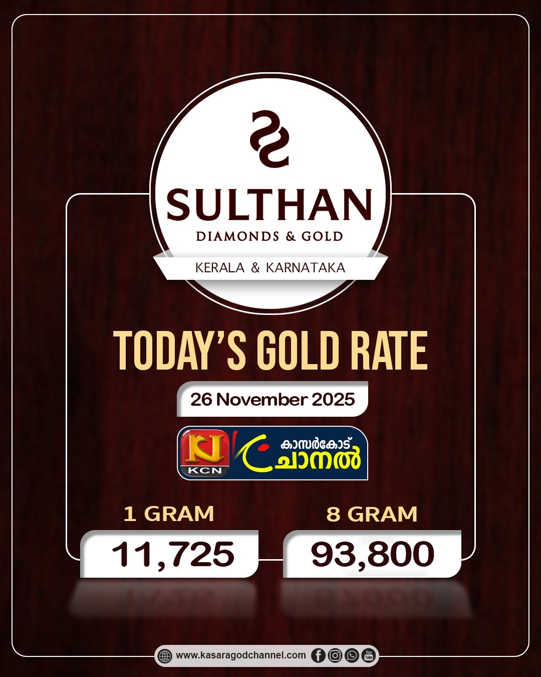 സ്വര്ണ്ണവില ഉയര്ന്നുBy kcnchannel / November 26, 2025 സംസ്ഥാനത്ത് സ്വര്ണ്ണവില ഉയര്ന്നു. ഗ്രാമിന് 11,725 രൂപയും പവന് 93,800 രൂപയുമാണ് ഇന്നത്തെ വില