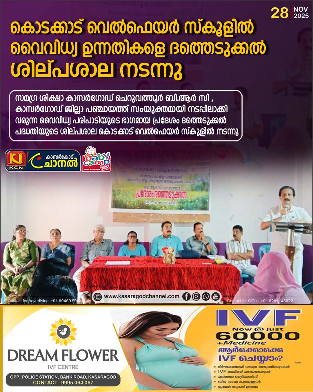 ചെറുവത്തൂര് : സമഗ്ര ശിക്ഷാ കാസര്ഗോഡ് ചെറുവത്തൂര് ബി.ആര് സി , കാസര്ഗോഡ് ജില്ലാ പഞ്ചായത്ത് സംയുക്തമായി നടപ്പിലാക്കി വരുന്ന വൈവിധ്യ പരിപാടിയുടെ ഭാഗമായ പ്രദേശംദത്തെടുക്കല് പദ്ധതിയുടെ ശില്പശാല കൊടക്കാട് വെല്ഫെയര് സ്കൂളില് നടന്നു. ചെറുവത്തൂര് സബ് ജില്ലയിലെ കുന്നും കിണറ്റുകര എന്ന പ്രദേശം ദത്തെടുക്കലിന്റെ ഭാഗമായി നടപ്പിലാക്കേണ്ട പദ്ധതി രൂപീകരിക്കുന്ന ഒരു ദിവസത്തെ ശില്പശാലയാണ് നടന്നത്.പരിപാടിയുടെ ഔപചാരിക ഉദ്ഘാടനം സമഗ്ര ശിക്ഷാ ജില്ല പ്രൊജക്റ്റ് കോ-ഓഡിനേറ്റര് ബിജുരാജ് വി.എസ് ഉദ്ഘാടനം ചെയ്തു. ചടങ്ങില് സ്കൂള് ഹെഡ്മാസ്റ്റര് ജയദീപ് എന്.കെ അദ്ധ്യക്ഷത വഹിച്ചു. ചടങ്ങില് ചെറുവത്തൂര് എ.ഇ.ഒ രമേശന്പുന്ന ത്തിരിയന് മുഖ്യാതിഥിയായിരുന്നു. ഡയറ്റ് ലക്ച്ചറര് ഡോ: പ്രസന്ന .എ, പി.ടി.എ പ്രസിഡണ്ട് ഷിമോദ് . കെ, എം.പി ടി എ പ്രസിഡണ്ട് അജിത വി, എസ് എം സി ചെയര്മാന് ദിലീപ്കുമാര് പി, സീനിയര് അസിസ്റ്റന്റ് നന്ദിത. കെ, ട്രെയിനര് സതീശന് യു, സയന വി എം , പ്രദേശം ദത്തെടുക്കല് ചുമതയുള്ള ശ്രുതി. കെ, സൂര്യ. കെ വി സനൂപ്. സി എന്നിവര് ആശംസകള് അര്പ്പിച്ചു. ചടങ്ങില് ചെറുവത്തൂര് ബി.ആര് സി പ്രോഗ്രാം കോര്ഡിനേറ്റര് സുബ്രഹ്മണ്യന്.വി.വി സ്വാഗതവും ചെറുവത്തൂര് ബി.ആര് സി വൈവിധ്യ കോര്ഡിനേറ്റര് സാവിത്രി സി നന്ദിയും പ്രകാശിപ്പിച്ചു.
