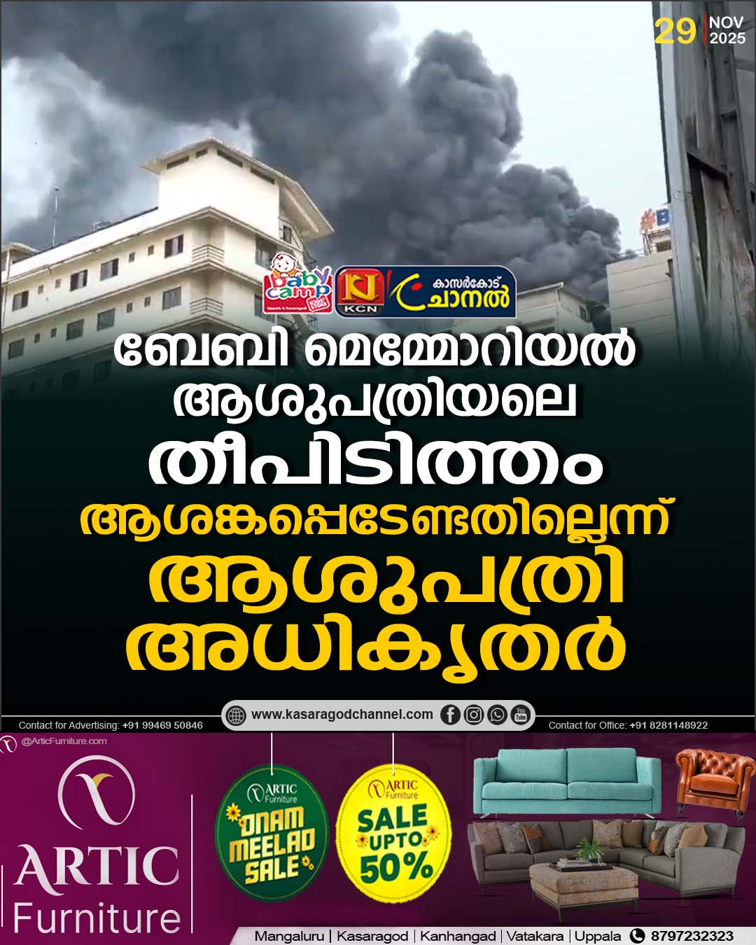 കോഴിക്കോട് ബേബി മെമ്മോറിയല് ആശുപത്രിയില് തീപിടിത്തം
