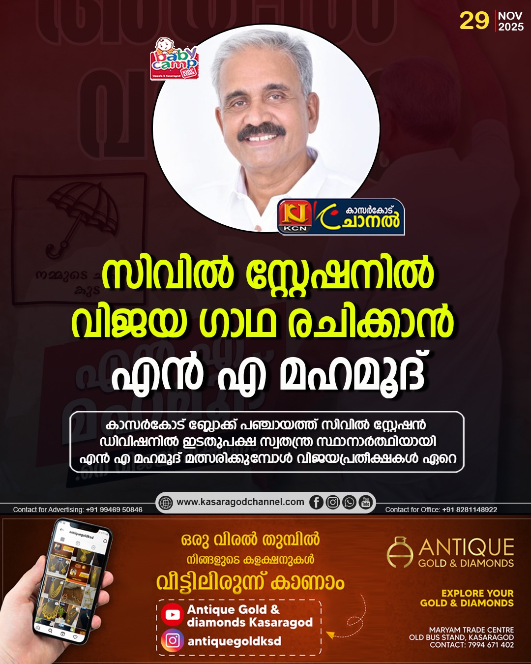 സിവില് സ്റ്റേഷനില് വിജയ ഗാഥ രചിക്കാന് എന് എ മഹമൂദ്