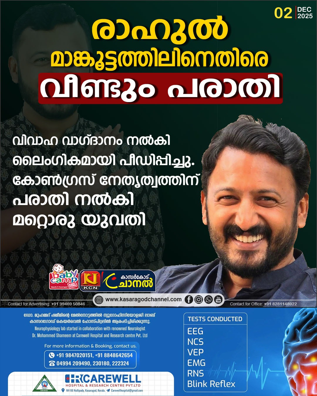 രാഹുല് മാങ്കൂട്ടത്തിലിനെതിരെ വീണ്ടും പരാതി. വിവാഹ വാഗ്ദാനം ചെയ്ത് രാഹുല് ലൈംഗികമായി പീഡിപ്പിച്ചതായി പരാതി. രാഹുല് മാങ്കൂട്ടത്തിലിനെതിരെ എഐസിസിക്കും കെപിസിസിക്കും പരാതി നല്കി യുവതി.