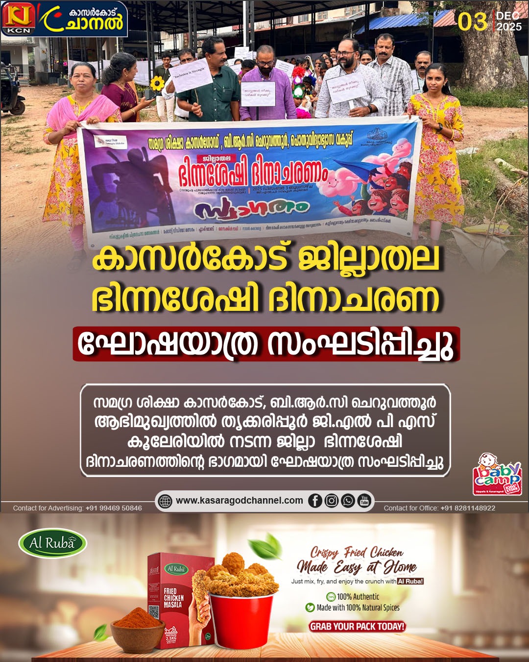 കാസര്ഗോഡ് ജില്ലാ തല ഭിന്നശേഷി ദിനാചരണ ഘോഷയാത്ര സംഘടിപ്പിച്ചു