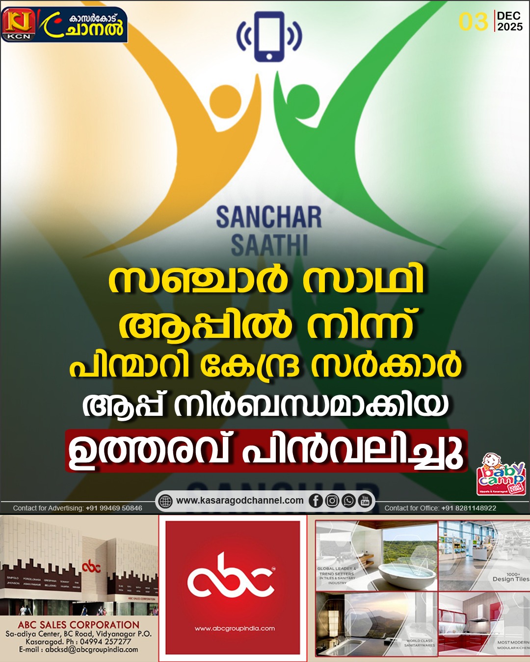 മൊബൈല് ഫോണ് സുരക്ഷയ്ക്കെന്ന പേരില് നിര്ദേശിച്ച സഞ്ചാര് സാഥി ആപ്പില് നിന്ന് പിന്മാറി കേന്ദ്രസര്ക്കാര്. ആപ്പ് നിര്ബന്ധമാക്കിയ ഉത്തരവ് ടെലികോം മന്ത്രാലയം പിന്വലിച്ചു. ആപ്പ് പ്രീ ഇന്സ്റ്റാള് ചെയ്യേണ്ട എന്ന് കേന്ദ്രം.
