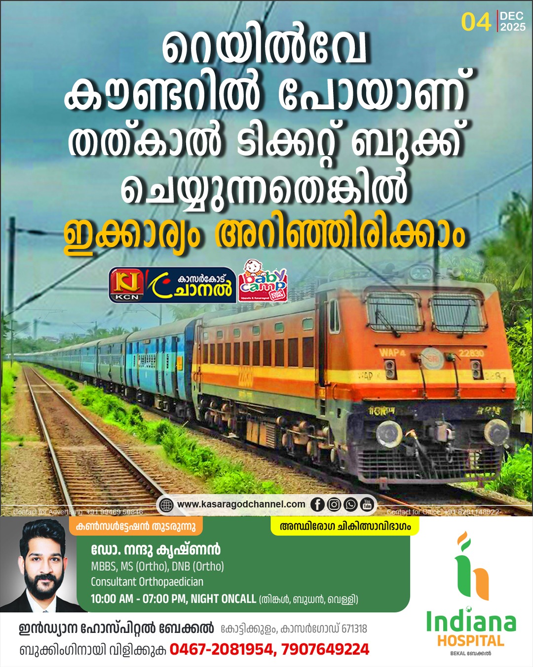 റെയില്വേ റിസര്വേഷന് കൗണ്ടറിലാണ് തത്കാല് ടിക്കറ്റുകള് ബുക്ക് ചെയ്യുന്നതെങ്കില് ഇനി മുതല് ഇക്കാര്യം കൂടി ഒന്ന് അറിഞ്ഞിരിക്കാം. യാത്രക്കാരുടെ മൊബൈല് ഫോണില് വരുന്ന ഒരു ഒടിപി വെരിഫിക്കഷേന് ചെയ്യണമെന്ന പുത്തന് രീതി നടപ്പിലാക്കി തുടങ്ങിയിരിക്കുകയാണ് റെയില്വേ. ലാസ്റ്റ് മിനിറ്റ് ബുക്കിങ് സംവിധാനം ദുരുപയോഗം ചെയ്യാതിരിക്കാനാണ് പുതിയ പ്രക്രിയ റെയില്വേ മന്ത്രാലയം ആരംഭിച്ചിരിക്കുന്നത്. ഇതുവഴി ഹൈ – ഡിമാന്ഡ് ടിക്കറ്റുകള് കൃത്യമായി ആവശ്യക്കാരിലെത്തിക്കാന് കഴിയും. പരീക്ഷണാടിസ്ഥാനത്തില് നവംബര് 17നാണ് ഈ സംവിധാനം ആദ്യം ആരംഭിച്ചത്. ആദ്യം ചുരുക്കം ചില ട്രെയിനുകളിലെ ടിക്കറ്റ് ബുക്ക് ചെയ്യാനായി ഈ സംവിധാനം ഉപയോഗിച്ചിരുന്നു. ഇനി മുതല് ഇതേ സംവിധാനം 52ഓളം ട്രെയിനുകളിലെ ടിക്കറ്റുകള് ബുക്ക് ചെയ്യാനായി ഉപയോഗിക്കാനാണ് തീരുമാനം.