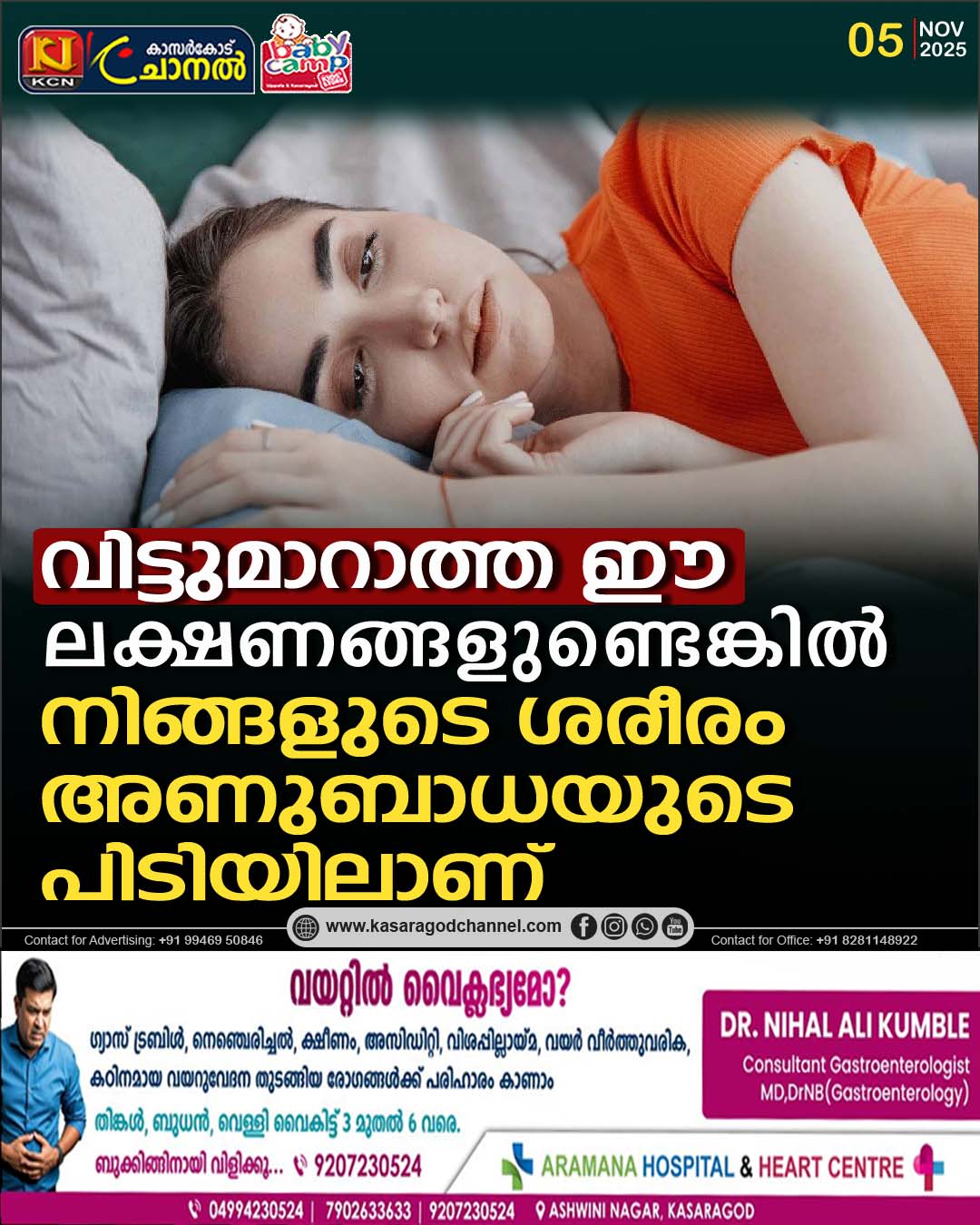 സമ്മര്ദ്ദം, ഉറക്കക്കുറവ്, കാലാവസ്ഥ ഇവയൊക്കെയാണ് മിക്ക രോഗങ്ങള്ക്കും കാരണം എന്ന് കരുതി അവഗണിക്കുകയാണ് പലരും ചെയ്യുന്നത്. എന്നാല് നിയന്ത്രിക്കാതെയിരുന്നാല് ചെറിയ അണുബാധ പോലും കൂടുതല് ഗുരുതരമായ ആരോഗ്യ പ്രശ്നങ്ങളിലേക്ക് നയിക്കും. അതുകൊണ്ട് പലപ്പോഴും മറഞ്ഞിരിക്കുന്ന ആരോഗ്യപ്രശ്നങ്ങളെ നേരത്തെ തിരിച്ചറിയേണ്ടതുണ്ട്. നിങ്ങളുടെ ശരീരം നിങ്ങളറിയാത്ത അണുബാധയുമായി പോരാടുന്നതിന്റെ ലക്ഷണങ്ങളെക്കുറിച്ച് അറിയാം.