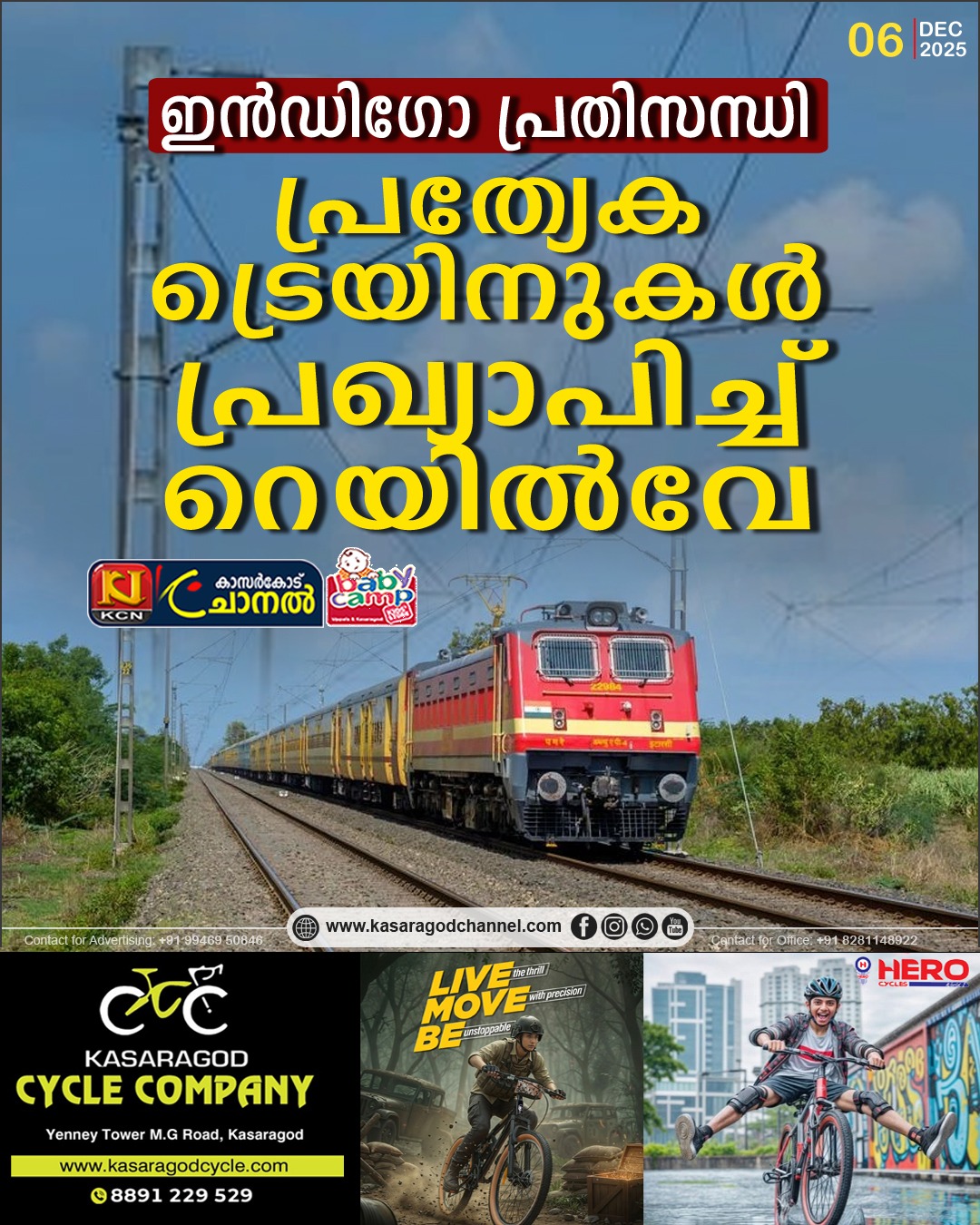 ഇന്ഡിഗോ വിമാന സര്വീസ് പ്രതിസന്ധി രൂക്ഷമായതിന് പിന്നാലെ പ്രത്യേക ട്രെയിനുകള് പ്രഖ്യാപിച്ച് ഇന്ത്യന് റെയില്വേ. ഇന്നും നാളെയും സ്പെഷ്യല് ട്രെയിന് സര്വീസ് നടത്തും