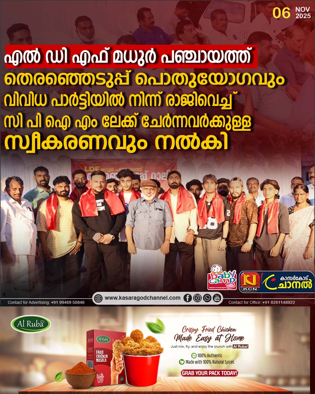 എല് ഡി എഫ് മധുര് പഞ്ചായത്ത് തെരഞ്ഞെടുപ്പ് പൊതുയോഗവും വിവിധ പാര്ട്ടിയില് നിന്ന് രാജിവെച്ച സി പി ഐ എം ലേക്ക് ചേര്ന്നവര്ക്കുള്ള സ്വീകരണവും നല്കി