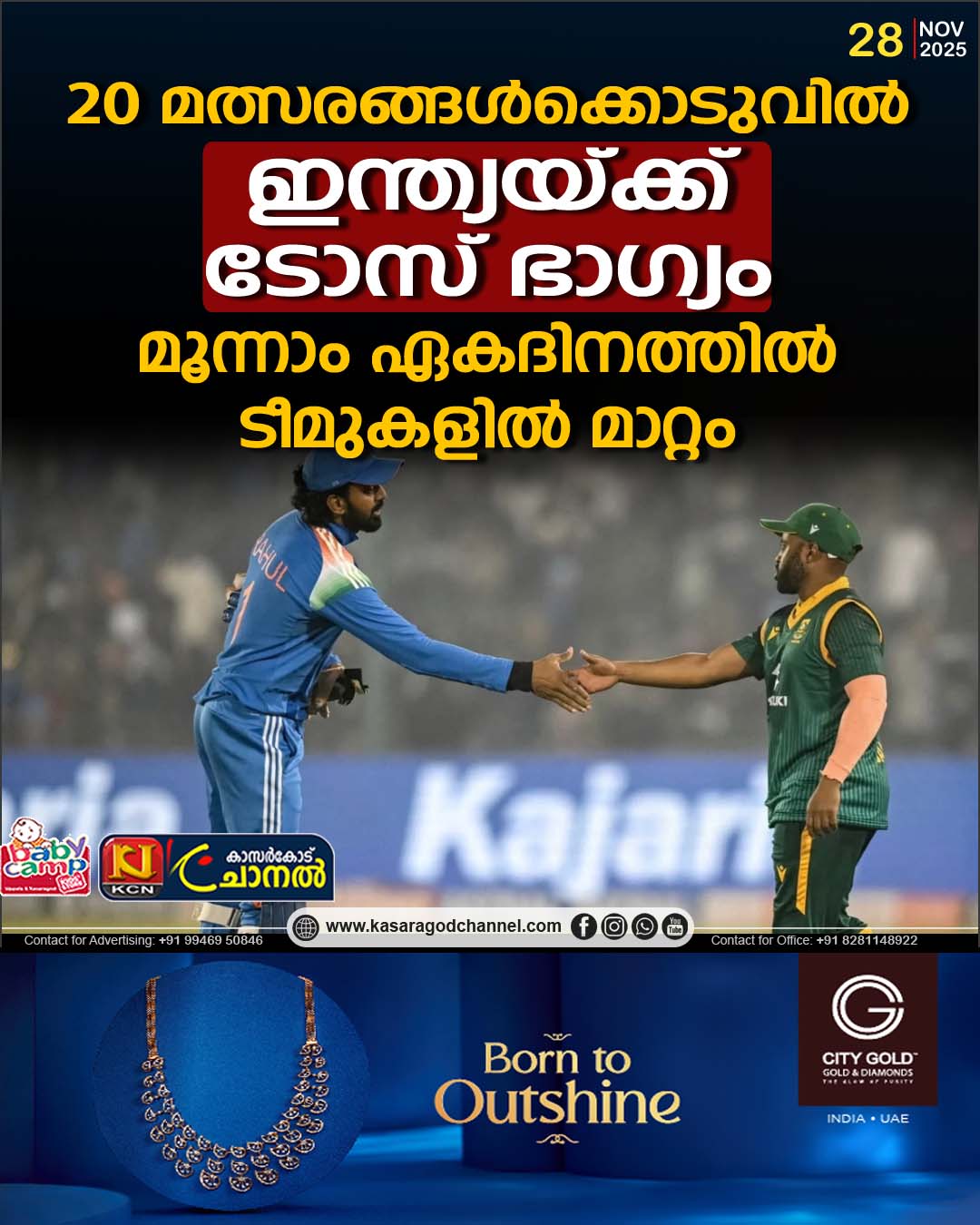 20 മത്സരങ്ങള്ക്കൊടുവില് ഇന്ത്യയ്ക്ക് ടോസ് ഭാഗ്യം; മൂന്നാം ഏകദിനത്തില് ടീമുകളില് മാറ്റം