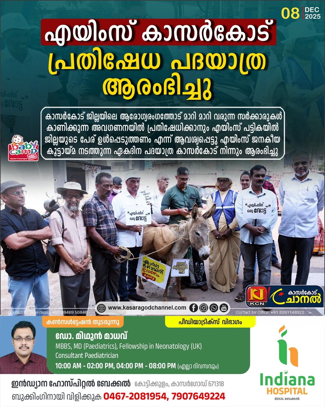 കാസറഗോഡ്: കാസറഗോഡ് ജില്ലയിലെ ആരോഗ്യ രംഗത്തോട് മാറി മാറി വരുന്ന സര്ക്കാരുകള് കാണിക്കുന്ന അവഗണനയില് പ്രതിഷേധിക്കാനും എയിംസ് പട്ടികയില് ജില്ലയുടെ പേര് ഉള്പ്പെടുത്തണം എന്ന് ആവശ്യപ്പെട്ടു എയിംസ് ജനകീയ കൂട്ടായ്മ നടത്തുന്ന ഏകദിന പദയാത്ര കാസറഗോഡ് നിന്നും ആരംഭിച്ചു.