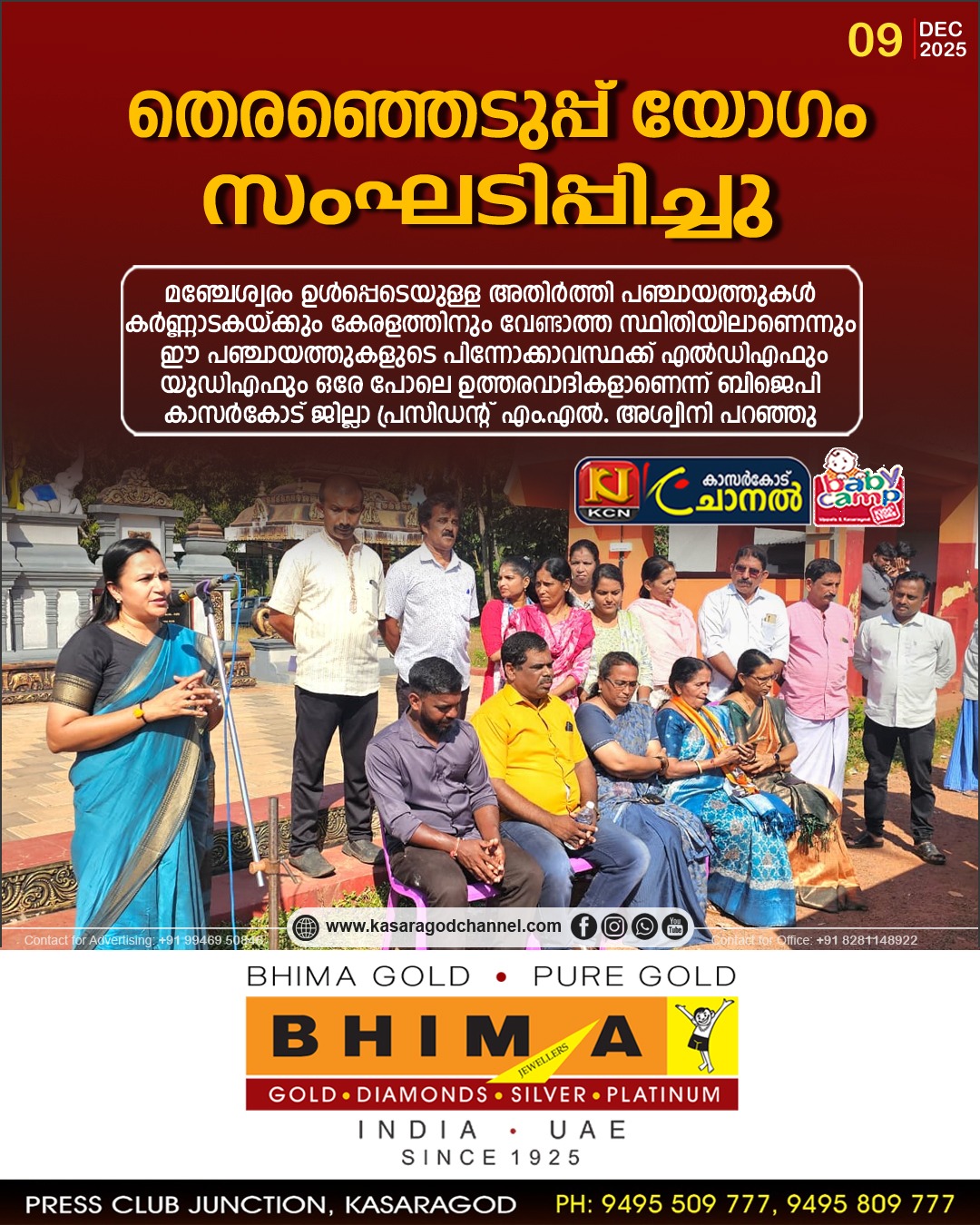 മാട: മഞ്ചേശ്വരം ഉള്പ്പെടെയുള്ള അതിര്ത്തി പഞ്ചായത്തുകള് കര്ണ്ണാടകയ്ക്കും കേരളത്തിനും വേണ്ടാത്ത സ്ഥിതിയിലാണെന്നും ഈ പഞ്ചായത്തുകളുടെ പിന്നോക്കാവസ്ഥക്ക് എല്ഡിഎഫും യുഡിഎഫും ഒരേ പോലെ ഉത്തരവാദികളാണെന്ന് ബിജെപി കാസര്ഗോഡ് ജില്ലാ പ്രസിഡന്റ് എം.എല്. അശ്വിനി പറഞ്ഞു.