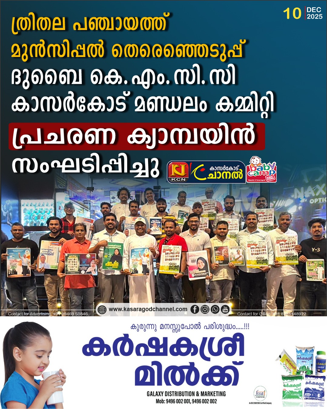 ദുബൈ: ആസന്നമായ ത്രിതല പഞ്ചായത്ത് മുന്സിപ്പല് തെരെഞ്ഞെടുപ്പ് ദുബൈ കെ.എം.സി.സി കാസറഗോഡ് മണ്ഡലം കമ്മിറ്റിയുടെ നേതൃത്വത്തില് പ്രചാരണ ക്യാമ്പയിന് സംഘടിപ്പിച്ചു. ദുബൈ അല് അത്താര് ഷോപ്പിംഗ് കോംപ്ലെക്സില് നടന്ന പ്രചാരണ ക്യാമ്പയിന് വ്യവസായിയും സാമൂഹ്യ പ്രവര്ത്തകനുമായ ആസിഫ് ബോസ്സ് ഉത്ഘാടനം ചെയ്തു.