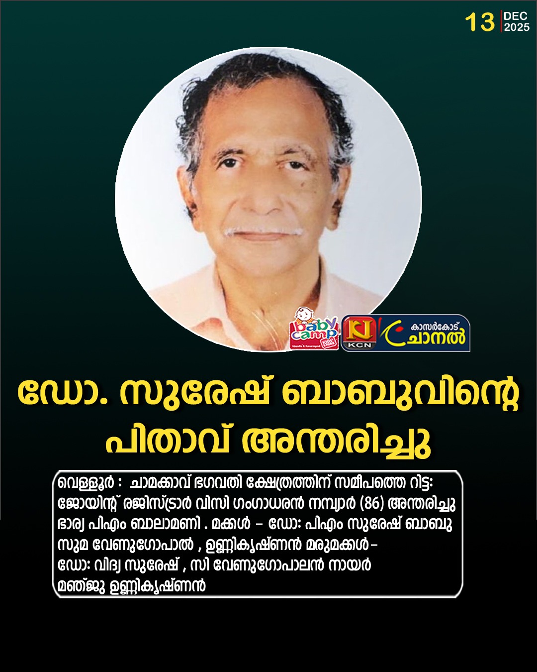 ഡോ. സുരേഷ് ബാബുവിന്റെ പിതാവ് അന്തരിച്ചു