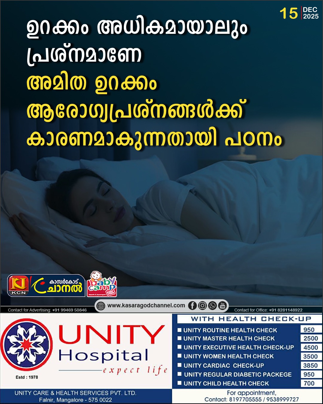 കൃത്യമായ ഭക്ഷണം ഉറക്കം വ്യായാമം എന്നിവ മെച്ചപ്പെട്ട ആരോഗ്യം ലഭിക്കുന്നതിന് ഏറെ ആവശ്യകരമാണ്. എന്നാല് ഇവ അമിതമായാല് അത് ശരീരത്തിന് ഏറെ ദോഷം ചെയുകയും ചെയ്യും. ആരോഗ്യത്തിനും ശാരീരികക്ഷമതയ്ക്കും ശരീരത്തിന് ഏറെ ആവശ്യമുള്ള ഒന്നാണ് ഉറക്കം എന്നാല് ഉറക്കം കുറയുന്നത് ശരീരത്തിന് ഏറെ പ്രശ്നങ്ങള് ഉണ്ടാകുന്നത് പോലെ തന്നെ കൂടി പോകുന്നതും ഗുരുതര ആരോഗ്യപ്രശ്നങ്ങള് ഉണ്ടാക്കുന്നതായി പഠനം. ദീര്ഘനേരം ഉറങ്ങുന്നത് അപകടകരമായ ഒരു പ്രശ്നമല്ലെന്നും എന്നാല് ആരോഗ്യം ദുര്ബലമാകുന്നതിന്റെ അടയാളമാണെന്നുമാണ് പഠനത്തില് കണ്ടെത്തിയത്.