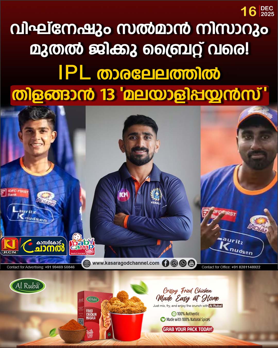 കഴിഞ്ഞ സീസണില് കളിച്ച മുംബൈ ഇന്ത്യന്സ് സ്പിന്നര് വിഘ്നേഷിനെയും സണ്റൈസേഴ്സ് ഹൈദരാബാദ് ബാറ്റര് സച്ചിന് ബേബിയെയും ഒഴിവാക്കിയിരുന്നു. ഇരുപത്തിനാലുകാരനായ വിഘ്നേഷിനെ മുംബൈ നിലനിര്ത്തുമെന്നാണ് കരുതിയിരുന്നത്. കഴിഞ്ഞ സീസണില് മലപ്പുറം സ്വദേശി അഞ്ച് കളിയില് ആറ് വിക്കറ്റ് വീഴ്ത്തിതിളങ്ങിയിരുന്നു. എന്നാല് പരിക്കിനെ തുടര്ന്ന് പിന്വാങ്ങേണ്ടിവരികയായിരുന്നു. ഇത്തവണ യുവതാരത്തെ വലിയ തുക നല്കി സ്വന്തമാക്കാന് ടീമുകള് രംഗത്തുണ്ട്.