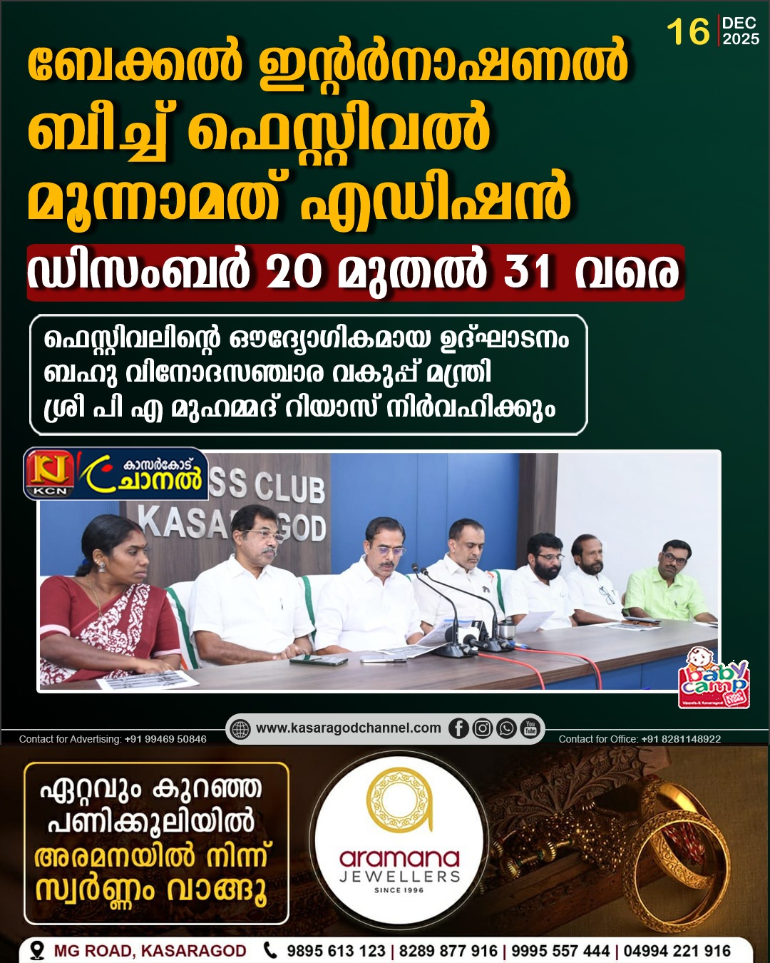ബേക്കല് ഇന്റര്നാഷണല് ബീച്ച് ഫെസ്റ്റിവല് മൂന്നാമത് എഡിഷന് ഡിസംബര് 20 മുതല് 31 വരെ