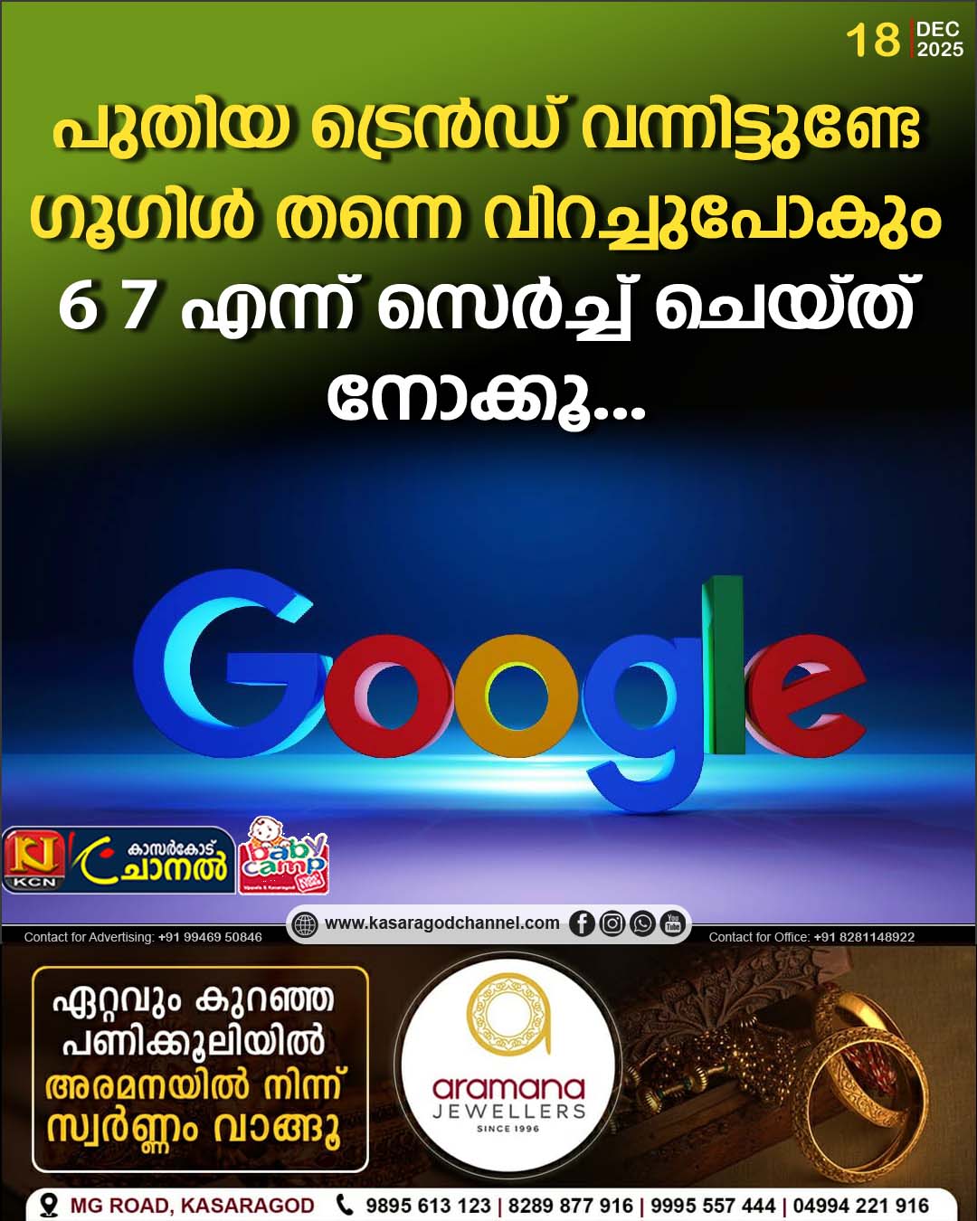 സോഷ്യല് മീഡിയയില് വ്യാപകമായിക്കൊണ്ടിരിക്കുന്ന പുതിയ ട്രെന്ഡാണ് 6 7. ഗൂഗിളും ട്രെന്ഡിനെ ഏറ്റെടുത്തിട്ടുണ്ട്. ഗൂഗിളിന്റെ സെര്ച്ച് ബാറില് 6 7 എന്ന് ടൈപ്പ് ചെയ്ത് എന്റര് കൊടുത്തുനോക്കൂ. എന്താണ് സംഭവിക്കുന്നത് എന്നല്ലേ?. ഗൂഗിള് തന്നെ ഇളകി മറിയും. അതായത് സ്ക്രീന് ഷേക്ക് ചെയ്യും. ഇത് കുറച്ച് സമയം നീണ്ടുനില്ക്കുകയും വീണ്ടും പഴയതുപോലെയാവുകയും ചെയ്യും.