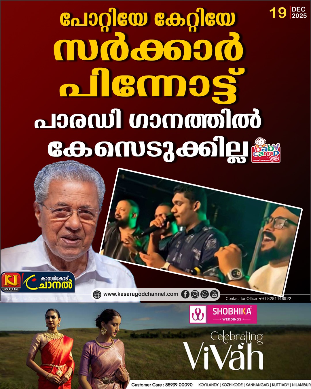 തിരുവനന്തപുരം: വിവാദ പാരഡി ഗാനത്തില് കേസെടുക്കില്ല. കേസെടുക്കേണ്ടതില്ലെന്ന് ക്രമസമാധാന ചുമതലയുള്ള എഡിജിപി തിരുവനന്തപുരം സിറ്റി സൈബര് പൊലീസിന് നിര്ദേശം നല്കി. പാരഡി ഗാനം നീക്കാന് മെറ്റയ്ക്കും യൂട്യൂബിനും കത്ത് നല്കേണ്ടതില്ലെന്നും അറിയിച്ചു.