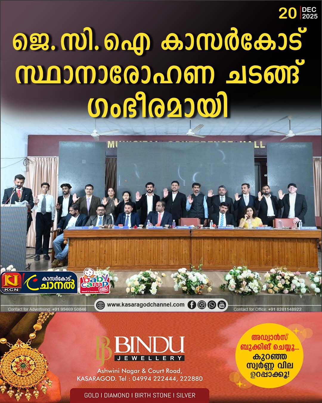 കാസര്ഗോഡ് : ജെ.സി.ഐ കാസര്ഗോഡിന്റെ 2026 വര്ഷത്തെ ഭാരവാഹികളുടെ സ്ഥാനാരോഹണ ചടങ്ങും സുവര്ണ്ണ ജൂബിലി ആഘോഷവും കാസര്ഗോഡ് മുനിസിപ്പാള് കോണ്ഫറന്സ് ഹാളില് വെച്ച് സംഘടിപ്പിച്ചു. ജെ.സി.ഐ കാസര്ഗോഡ് പ്രസിഡണ്ട് ജി.വി മിഥുന് അധ്യഷത വഹിച്ച ചടങ്ങില് ജെ.സി.ഐ സോണ് പ്രസിഡണ്ട് എന്. അരുണ് പ്രഭു വിശിഷ്ടാതിഥിയായി ജെ.സി.ഐ ദേശീയ പരിശീലകന് എന്.പി യത്തീഷ് ബള്ളാള് മുഖ്യപ്രഭാഷണം നടത്തി. സിനിമാ താരം ശരണ്യ രാമചന്ദ്രന് പ്രേത്യേക അതിഥിയായി പങ്കെടുത്തു. സോണ് വൈസ് പ്രസിഡണ്ട് കെ.എച്ച് റാഷിദ്, ജെ.സി.ഐ കാസര്ഗോഡ് മുന് പ്രസിഡണ്ട് കെ.എം മൊയിനുദ്ദീന് എന്നിവര് സംസാരിച്ചു. പ്രോഗ്രാം ഡയറക്ടര് സി.കെ അജിത്ത്കുമാര് സ്വാഗതവും സെക്രട്ടറി എ. സാദിഖ് നന്ദിയും പറഞ്ഞു. 2026 വര്ഷത്തെ പ്രസിഡണ്ടായി നിസാര് തായല്, സെക്രട്ടറി എ. സാദിഖ്, ട്രഷറര് കെ.വി സജീഷ് മറ്റു ഗവര്ണിംഗ് ബോര്ഡ് അംഗങ്ങളും സത്യപ്രതിജ്ഞ ചെയ്ത് പദവികള് ഏറ്റെടുത്തു. ചടങ്ങില് വെച്ച് ബിസിനസ്സ് എക്സലന്സ്, യംങ്ങ് എന്റര്പ്രേണര്, സോഷ്യല് സര്വ്വീസ് എക്സലന്സ് പുരസ്ക്കാരങ്ങള് സമ്മാനിച്ചു. ജെ.സി.ഐ കാസര്ഗോഡിന്റെ മുന്കാല പ്രസിഡണ്ടുമാരെയും ചടങ്ങില് വെച്ച് ആദരിച്ചു. വിവിധ മേഖലകളിലെ നിരവധി പേര് ചടങ്ങില് പങ്കെടുത്തു.