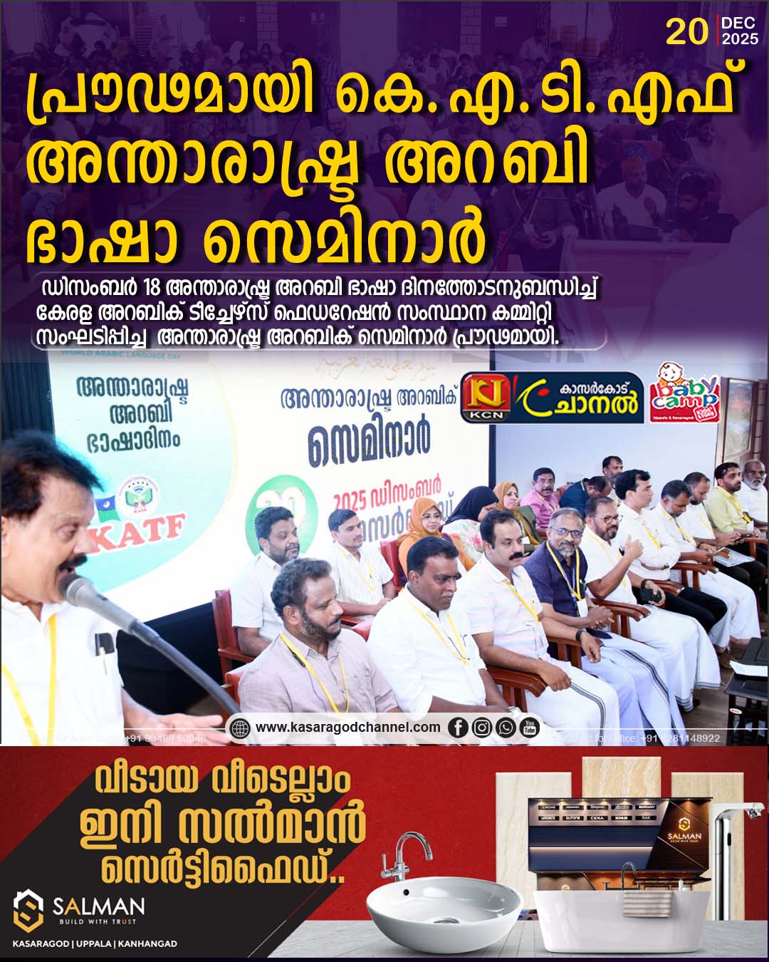 ഡിസംബര് 18 അന്താരാഷ്ട്ര അറബി ഭാഷാ ദിനത്തോടനുബന്ധിച്ച് കേരള അറബിക് ടീച്ചേഴ്സ് ഫെഡറേഷന് സംസ്ഥാന കമ്മിറ്റി സംഘടിപ്പിച്ച അന്താരാഷ്ട്ര അറബിക് സെമിനാര് പ്രൗഢമായി. വിദേശ യൂണിവേഴ്സിറ്റികളില് നിന്നടക്കമുള്ള അറബി ഭാഷാ പണ്ഡിതര് വെര്ച്വലായും നേരിട്ടും പങ്കെടുത്ത സെമിനാറില് അറബി ഭാഷ ഉയര്ത്തിപ്പിടിക്കുന്ന സാംസ്കാരിക മുന്നേറ്റങ്ങളെയും സാമൂഹിക ബന്ധങ്ങളെയും ആസ്പദമാക്കിയുള്ള പ്രബന്ധങ്ങള് അവതരിപ്പിച്ചു.