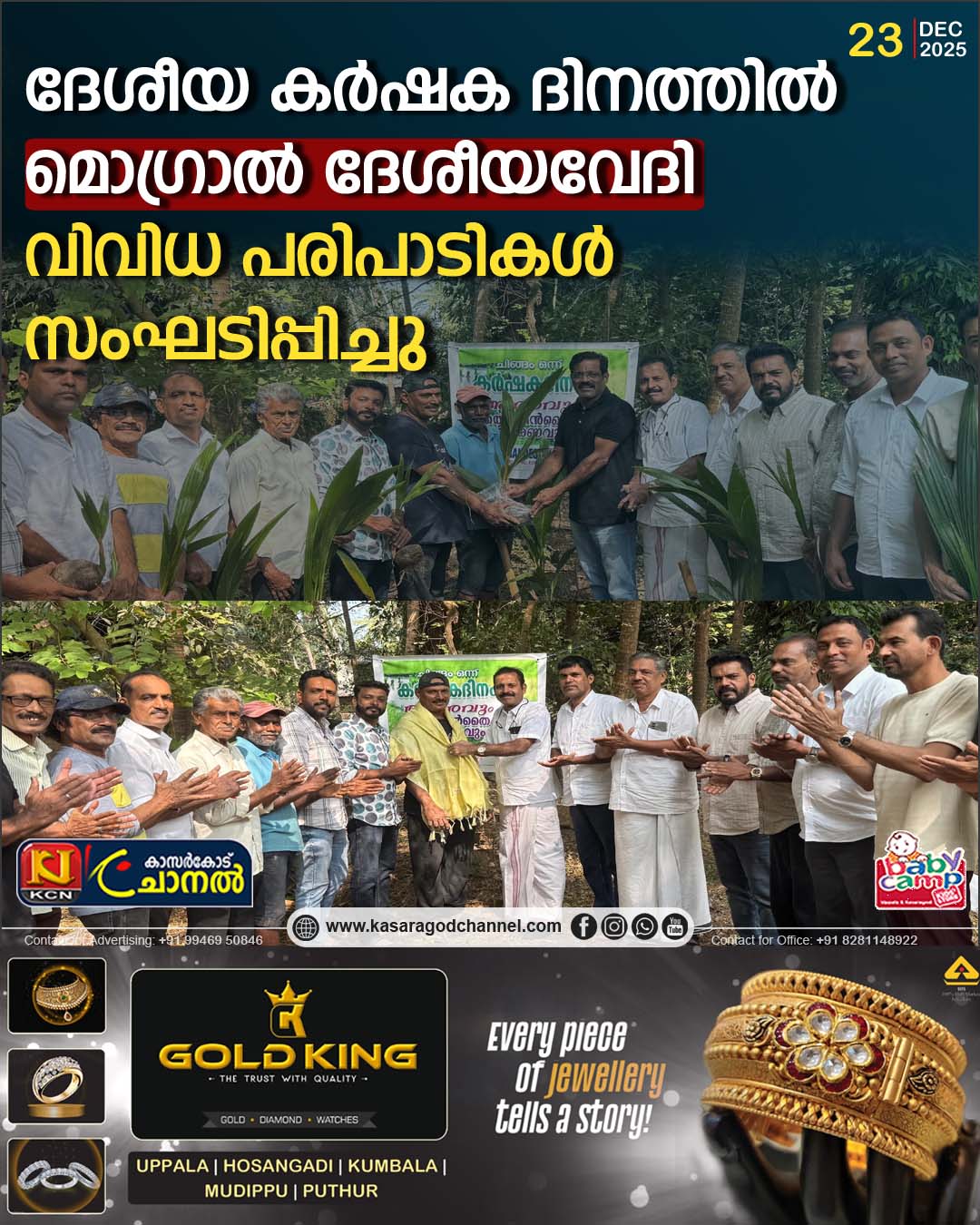 മൊഗ്രാല്.മുന് പ്രധാനമന്ത്രി ചൗധരി ചരണ് സിംഗിന്റെ ജന്മദിനത്തോടനുബന്ധിച്ച് ഡിസംബര് 23ന് രാജ്യമൊട്ടുക്കും സംഘടിപ്പിച്ചു വരുന്ന ദേശീയ കര്ഷക ദിനം മൊഗ്രാലില് മൊഗ്രാല് ദേശീയവേദി വിവിധ പരിപാടികളോടെ ആചരിച്ചു.
