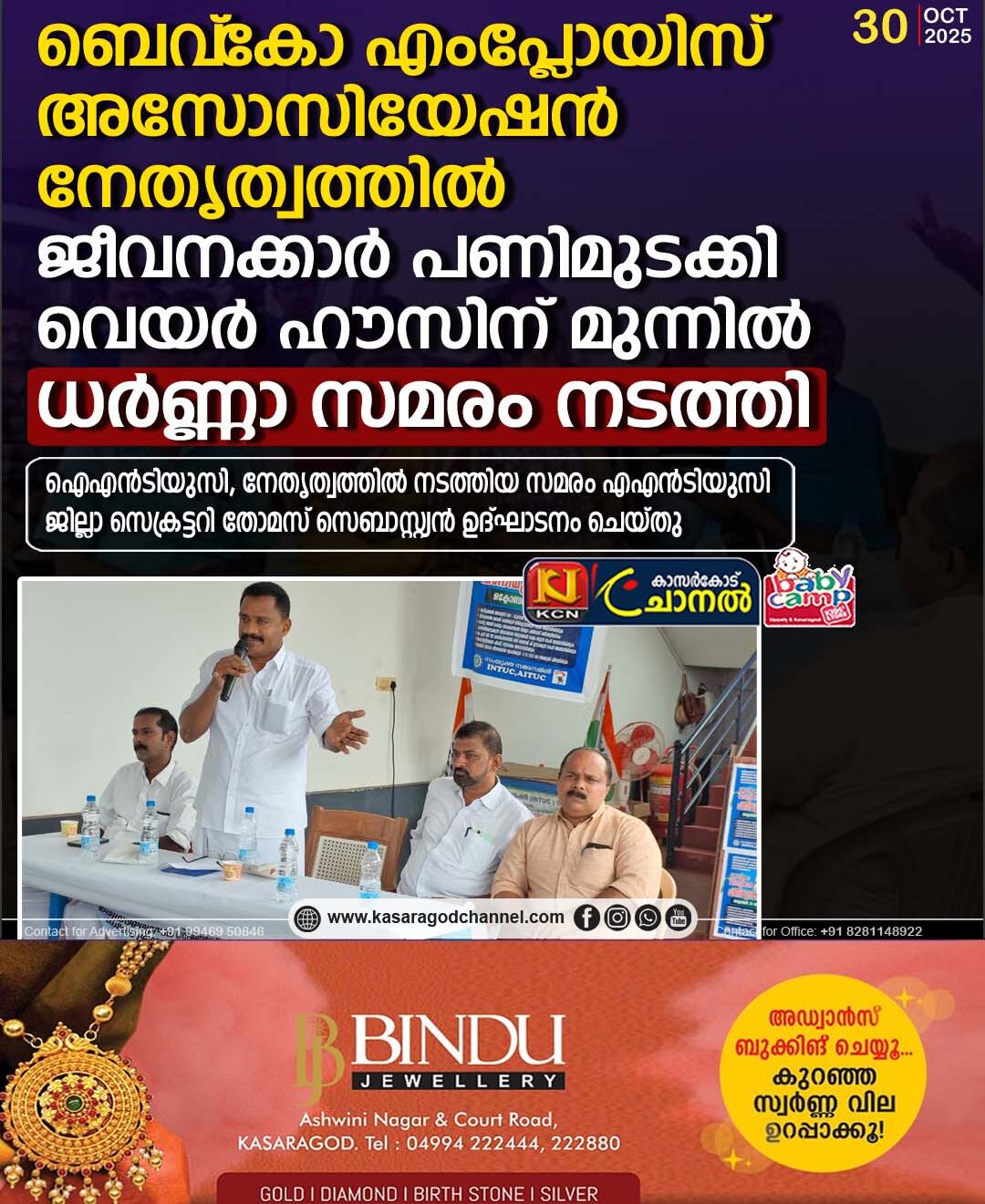 ഉദുമ: ബീവറേജസ് കോര്പ്പറേഷനിലെ ജീവനക്കാര്ക്ക് നല്കി വരുന്ന അഡീഷണല് അലവന്സ് വെട്ടിക്കുറച്ച സര്ക്കാര് നടപടിക്കെതിരെ ബെവ്കോ എംപ്ലോയിസ് അസോസിയേഷന് നേതൃത്വത്തില് ജീവനക്കാര് പണിമുടക്കി ബട്ടത്തൂരിലെ വെയര് ഹൗസിന് മുന്നില് ധര്ണ്ണാ സമരം നടത്തി. മാനേജ്മെന്റ് സര്ക്കാരിലേക്ക് ശുപാര്ശ ചെയ്ത അഡീഷണല് അലവന്സ് 600 രൂപ വെട്ടിക്കുറച്ച നടപടി പിന്വലിക്കുക, 2021 മുതല് നല്കേണ്ട ഡിഎ കുടിശ്ശിക അനുവദിച്ചു നല്കുക, അപേക്ഷയുടെ അടിസ്ഥാനത്തില് അല്ലാതെയുള്ള അന്യായ സ്ഥലം മാറ്റങ്ങള് ഒഴിവാക്കുക, ജീവനക്കാരെ കൊണ്ട് കാലിക്കുപ്പി തിരിച്ചെടുക്കുന്ന നടപടി ഉപേക്ഷിക്കുക, ചില്ലറ വില്പന ശാലകളിലെ ഷിഫ്റ്റ് സമ്പ്രദായം പൂര്ണ്ണമായും ഒഴിവാക്കുക, തുടങ്ങിയ ആവശ്യങ്ങള് ഉന്നയിച്ചായിരുന്നു സംയുക്ത സമരസമിതി നേതൃത്വത്തില് ജീവനക്കാര് ഐഎന്ടിയുസി, എഐടിയുസി നേതൃത്വത്തില് സംസ്ഥാന വ്യാപകമായി സമരത്തിനിറങ്ങിയത്. ഐഎന്ടിയുസി നേതൃത്വത്തില് ബടത്തുരിലെ വെയര് ഹൗസിന് മുന്നില് നടത്തിയ ധര്ണ്ണ ഐഎന്ടിയുസി ജില്ലാ സെക്രട്ടറിയും കേരള കള്ള് വ്യവസായ തൊഴിലാളി ക്ഷേമനിധി ബോര്ഡ് അംഗവുമായ തോമസ് സെബാസ്റ്റ്യന് ഉദ്ഘാടനം ചെയ്തു. ബെവ്കോ എംപ്ലോയിസ് അസോസിയേഷന് ജില്ലാ പ്രസിഡന്റ് ഒ കെ സുധാകരന് അധ്യക്ഷത വഹിച്ചു. അസോസിയേഷന് സംസ്ഥാന കമ്മിറ്റിയംഗം എ കെ ഉണ്ണികൃഷണന്, മുന് ജില്ലാ പ്രസിഡന്റ് ജോര്ജ്കുട്ടി തോമസ്, പെന്ഷനേഴ്സ് അസോസിയേഷന് ജില്ലാ പ്രസിഡന്റ് ടി സി ബേബി എന്നിവര് സംസാരിച്ചു. ജില്ലാ സെക്രട്ടറി സോജിമോന് ജോര്ജ് സ്വാഗതവും ജില്ലാ കമ്മിറ്റിയംഗം രവീന്ദ്രന് പാടച്ചേരി നന്ദിയും പറഞ്ഞു. രമേശന് മാമുനി, സുനില്കുമാര് എം പി, ഷില്ജി ബിജു, വനജാക്ഷി, ഇ സി രാമചന്ദ്രന് തുടങ്ങിയവര് സമരത്തിന് നേതൃത്വം നല്കി.