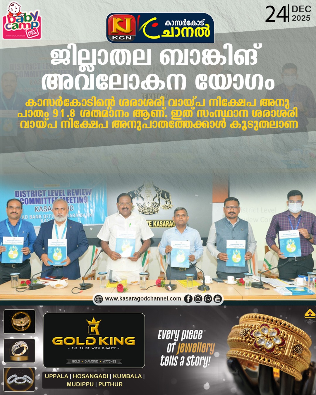 കാസര്കോട്: കാസര്കോടിന്റെ ശരാശരി വായ്പ നിക്ഷേപ അനു പാതം 91.8 ശതമാനം ആണ്. ഇത് സംസ്ഥാന ശരാശരി വായ്പ നിക്ഷേപ അനുപാതത്തേക്കാള് കൂടുതലാണ്. ജില്ലയിലെ ബാ ങ്കിങ് മേഖലയുടെ പ്രവര്ത്തന മികവാണ്. യോഗത്തില് നബാര് ഡിന്റെ 2026- 27 സാമ്പത്തിക വര്ഷത്തിലേക്കുള്ള പദ്ധതികളു ടെ വിശദവിവരങ്ങള് അടങ്ങിയ പുസ്തകം ‘പൊട്ടന്ഷ്യല് ലിങ്ക്ഡ് ക്രെഡിറ്റ് പ്ലാന് 2026- 27’പ്രകാ ശനം ചെയ്തു.