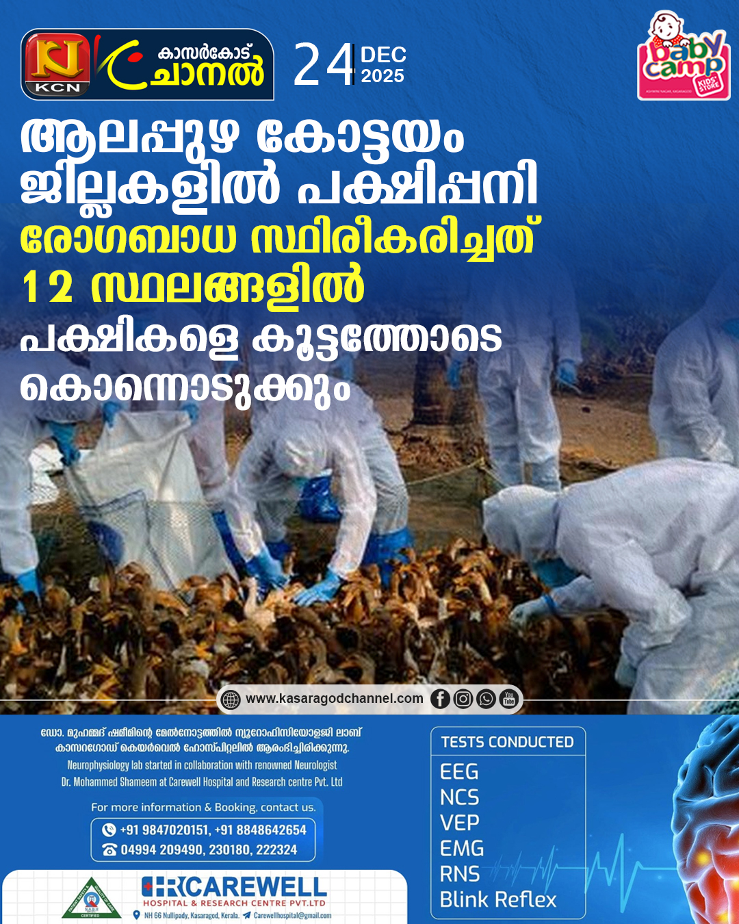 രണ്ട് ജില്ലകളിലായി 12 ഇടങ്ങളിലാണ് രോഗബാധ കണ്ടെത്തിയത്. ആലപ്പുഴയില് മാത്രം 19811 പക്ഷികളെയാണ് കൊന്നൊടുക്കുക. രോഗബാധ സ്ഥിരീകരിച്ച പ്രദേശങ്ങളുടെ ഒരു കിലോമീറ്റര് ചുറ്റളവിലാണ് പക്ഷികളെ കൊന്നൊടുക്കുന്നത്.