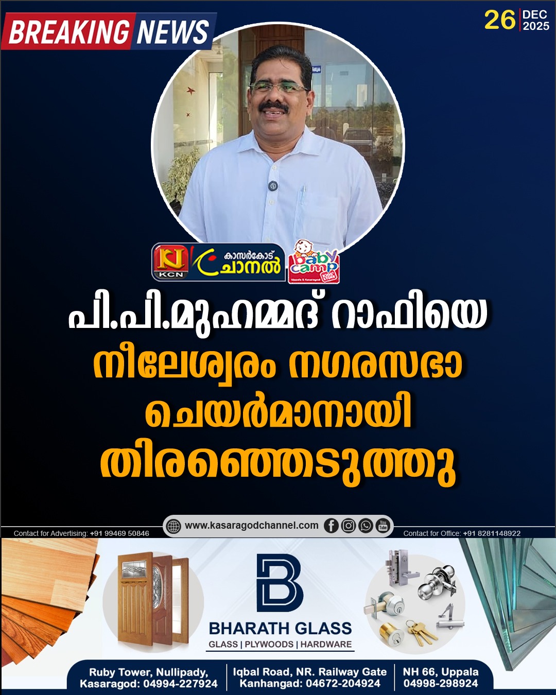 പി.പി.മുഹമ്മദ് റാഫിയെ നീലേശ്വരം നഗരസഭാ ചെയര്മാനായി തിരഞ്ഞെടുത്തു.