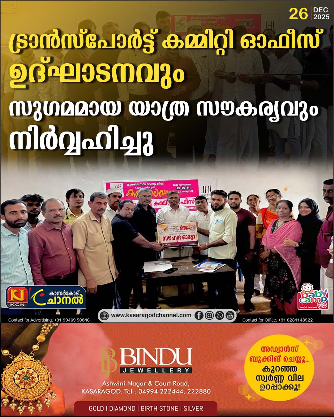 ട്രാന്സ്പോര്ട്ട് കമ്മിറ്റി ഓഫീസ് ഉദ്ഘാടനവും, സുഗമമായ യാത്ര സൗകര്യവും നിര്വ്വഹിച്ചു