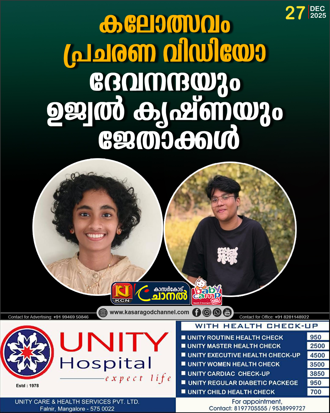 കലോത്സവം പ്രചരണ വിഡിയോ :ദേവനന്ദയും ഉജ്വല് കൃഷ്ണയും ജേതാക്കള്