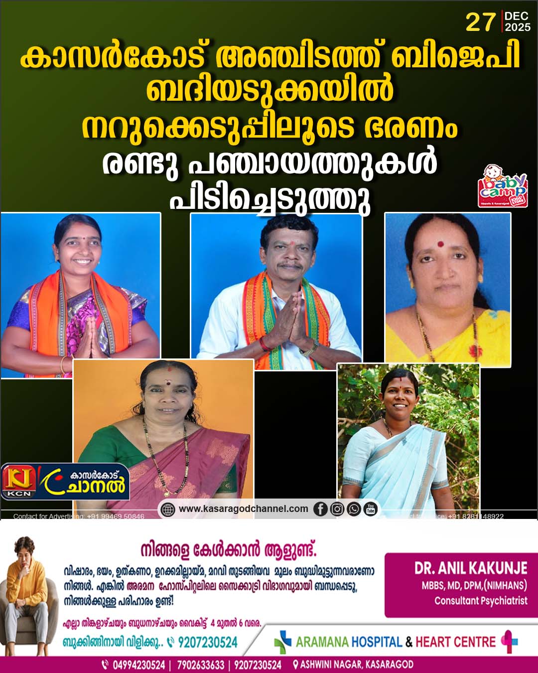 കാസര്കോട്: ജില്ലയില് ബിജെപിക്ക് 5 പഞ്ചായത്തുകളില്