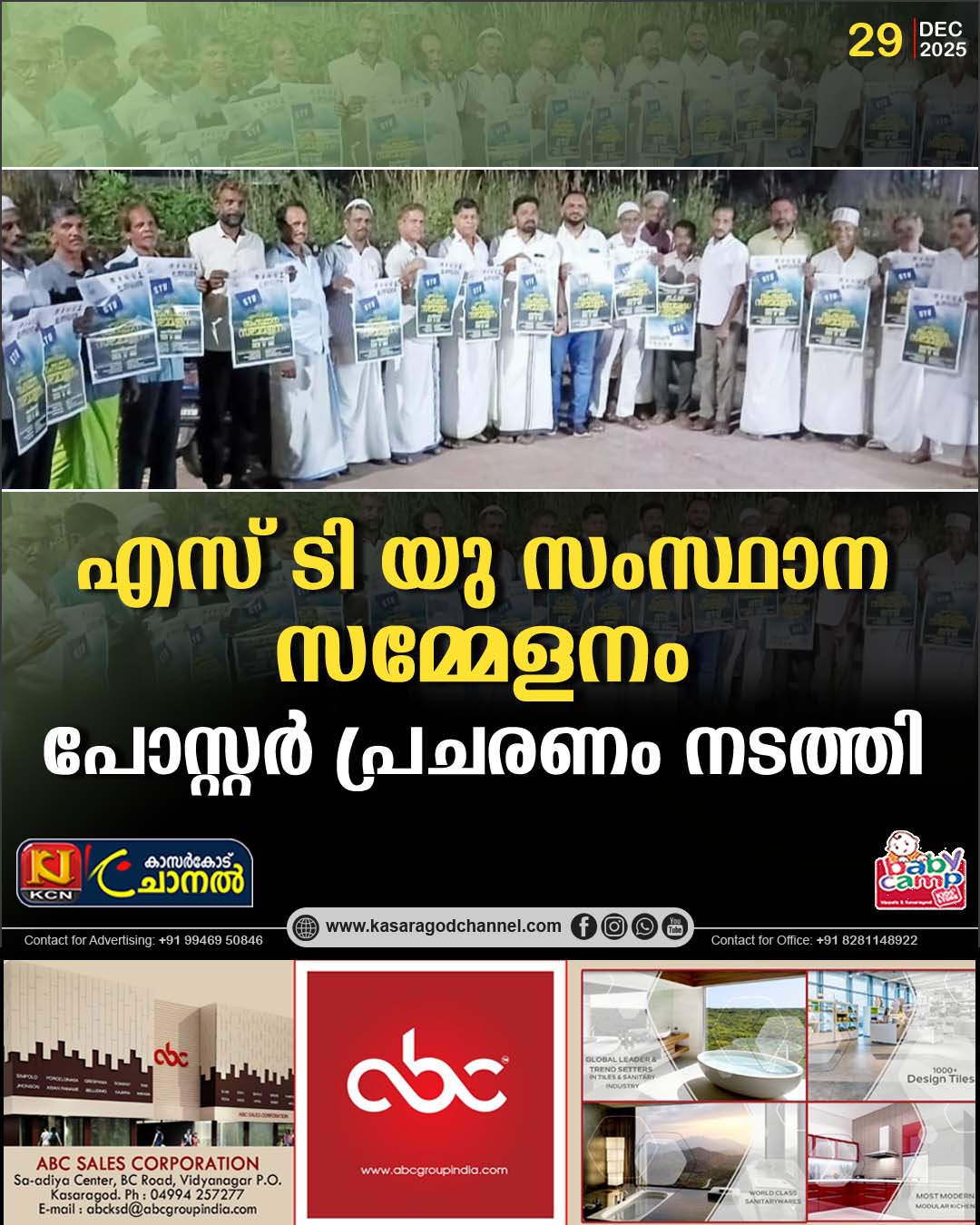 ഫോട്ടോ: നിര്മാണ തൊഴിലാളി യൂണിയന് എസ് ടി യു നായന്മാര്മൂല യൂണിറ്റ് നടത്തിയ സമ്മേളന പോസ്റ്റര് പ്രചരണം എസ് ടി യു ജില്ലാ പ്രസിഡണ്ട് എ അഹമ്മദ് ഹാജി ഉദ്ഘാടനം ചെയ്യുന്നു
