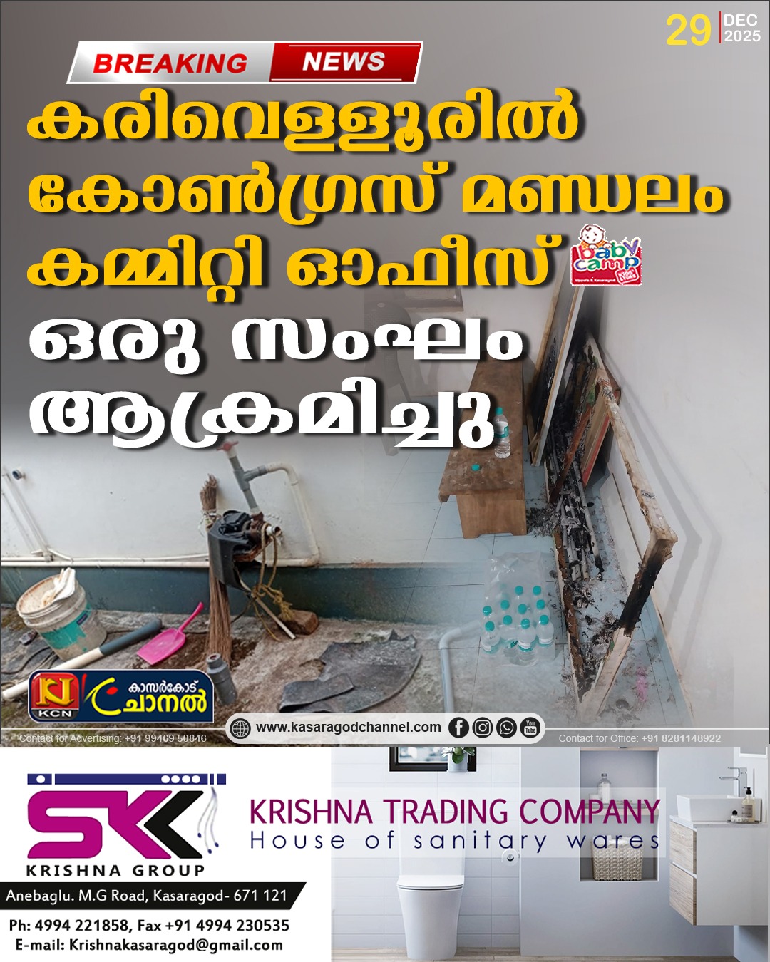 കരിവെള്ളൂരില് കോണ്ഗ്രസ് മണ്ഡലം കമ്മിറ്റി ഓഫീസ് ഒരു സംഘം ആക്രമിച്ചു