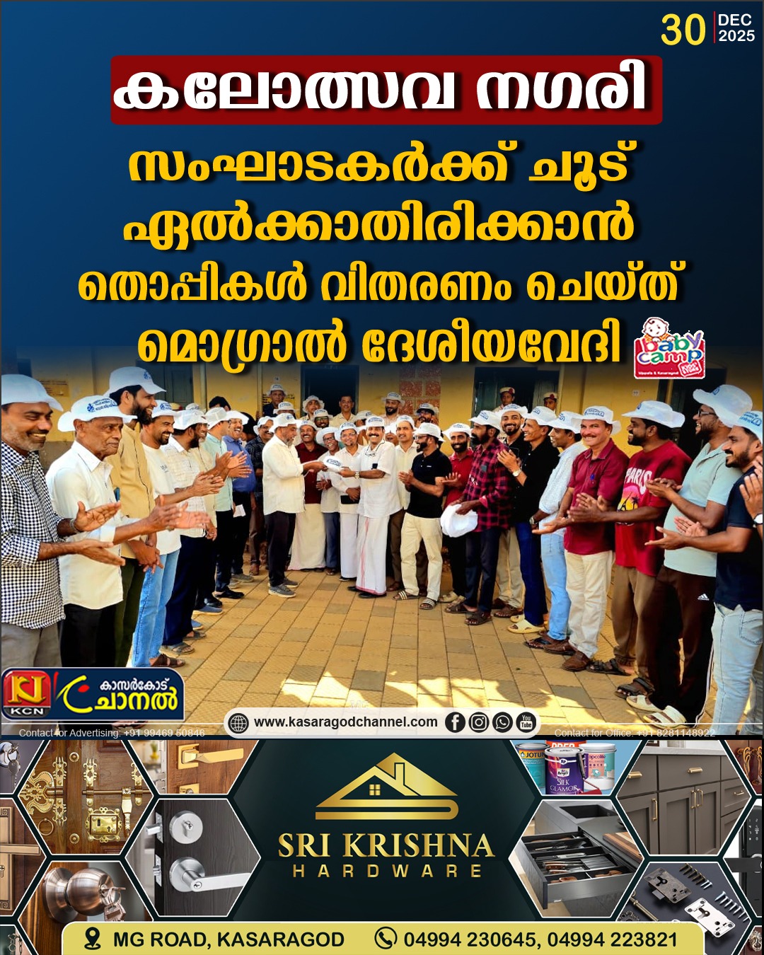 മൊഗ്രാല് ദേശീയവേദി 500 കിലോ അരിയുടെ 25,000 രൂപയും,30 ട്രോഫികളും നല്കിയതിന് പിന്നാലെ ഇന്നലെ സംഘാടകര്ക്ക് ചൂട് ഏല്ക്കാതിരിക്കാന് 500-ഓളം തൊപ്പികളും വിതരണം ചെയ്തു.