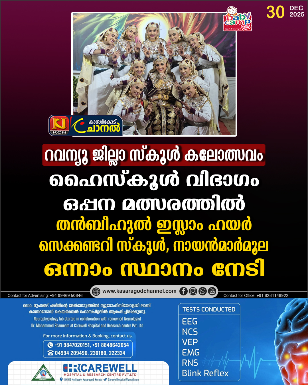 കാസര്കോട് റവന്യൂ ജില്ലാ സ്കൂള് കലോത്സവത്തിലെ ഹൈസ്കൂള് വിഭാഗം ഒപ്പന മത്സരത്തില് തന്ബീഹുല് ഇസ്ലാം ഹയര് സെക്കണ്ടറി സ്കൂള്, നായന്മാര്മൂല ഒന്നാം സ്ഥാനം നേടി