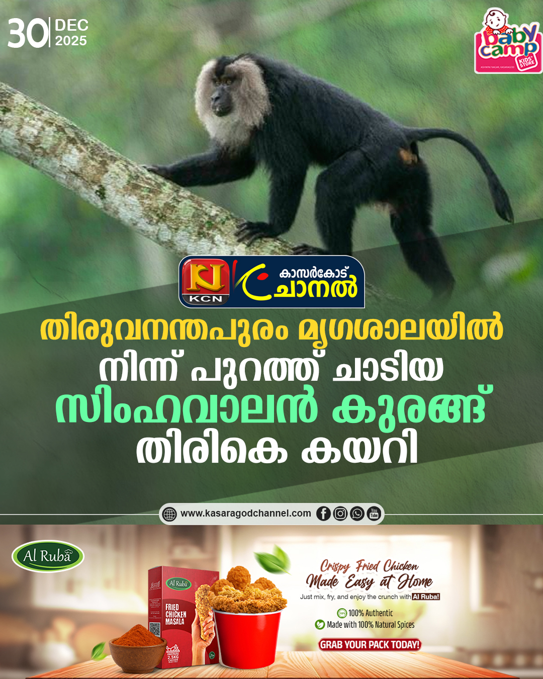 തിരുവനന്തപുരം മൃഗശാലയില് നിന്ന് പുറത്ത് ചാടിയ സിംഹവാലന് കുരങ്ങ് തിരികെ കയറി