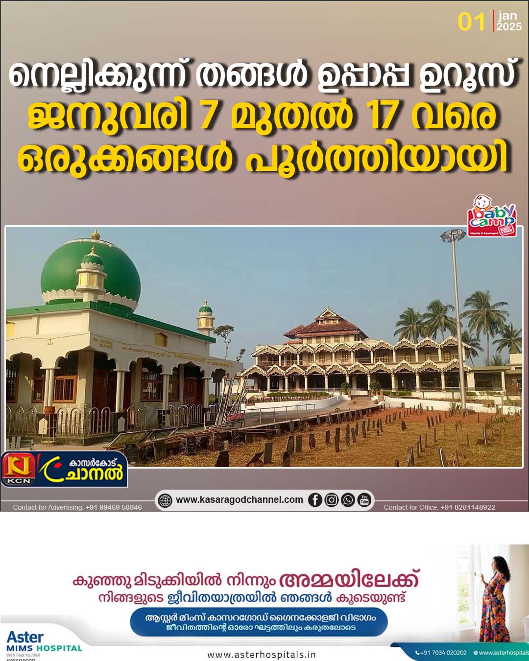 കാസര്കോട്: ചരിത്ര പ്രസിദ്ധമായ നെല്ലിക്കുന്ന് തങ്ങള് ഉപ്പാപ്പ ഉറൂസിന്റെ ഒരുക്കങ്ങള് പൂര്ത്തിയായി 2026 ജനുവരി 7 മുതല് 17 വരെ നടക്കുന്ന ഉറൂസിന് സംബന്ധിക്കാന് വിദേശത്ത് കഴിയുന്ന നെല്ലിക്കുന്ന് നിവാസികള് നാട്ടിലെത്തി തുടങ്ങി. ഉറൂസിന്റെ വിജയത്തിനായി ഗള്ഫിലും നാട്ടിലും കര്ണാടക, തമിഴ്നാട് സംസ്ഥാനങ്ങളില് പ്രചരണ വിഭാഗം വിപുലമായ പ്രവര്ത്തനം നടത്തിവരുന്നു. കേരള – കര്ണാടകത്തിലെ പ്രഗല്ഭ പ്രാസംഗികര് 11 ദിവസം നടക്കുന്ന മതപ്രഭാഷണങ്ങളില് സംബന്ധിക്കും. ദഫ്, ബുര്ദയും രാത്രിയില് പള്ളി പരിസരത്ത് നടത്തും. ഇതിനകം തന്നെ പള്ളിയും മഖാമും പരിസര പ്രദേശങ്ങളും ഉറൂസിനുള്ള ഒരുക്കങ്ങള് തുടങ്ങി. മതപ്രഭാഷണങ്ങള് ശ്രവിക്കാന് സ്ത്രീകളടക്കമുള്ളവര്ക്ക് വിപുലമായ സൗകര്യങ്ങള് ഒരുക്കിയിട്ടുണ്ട്. ഉറൂസിന് എത്താന് വിശ്വാസികള്ക്ക് വിവിധ സ്ഥലങ്ങളിലേക്ക് സ്വകാര്യ ബസ് സര്വ്വിസുകളും ഒരുക്കാന് ബന്ധപ്പെട്ടവര്ക്ക് നിര്ദ്ദേശം നല്കും. ഉറൂസില് എത്തുന്ന വാഹനങ്ങള്ക്ക് പാര്ക്ക് ചെയ്യാനുളള വിപുലമായ സൗകര്യങ്ങള് ഒരുക്കിയിട്ടുണ്ട്. നിയന്ത്രിക്കാന് വോളണ്ടിയര്മാരുടെ സേവനവും ഉണ്ടാകും. 18 ന് രാവിലെ ലക്ഷം പേര്ക്ക് അന്നദാനം നടത്തുന്നതോടെ രണ്ട് വര്ഷത്തിലൊരിക്കല് നടത്തുന്ന ഉറൂസിന് സമാപിതയാവും.