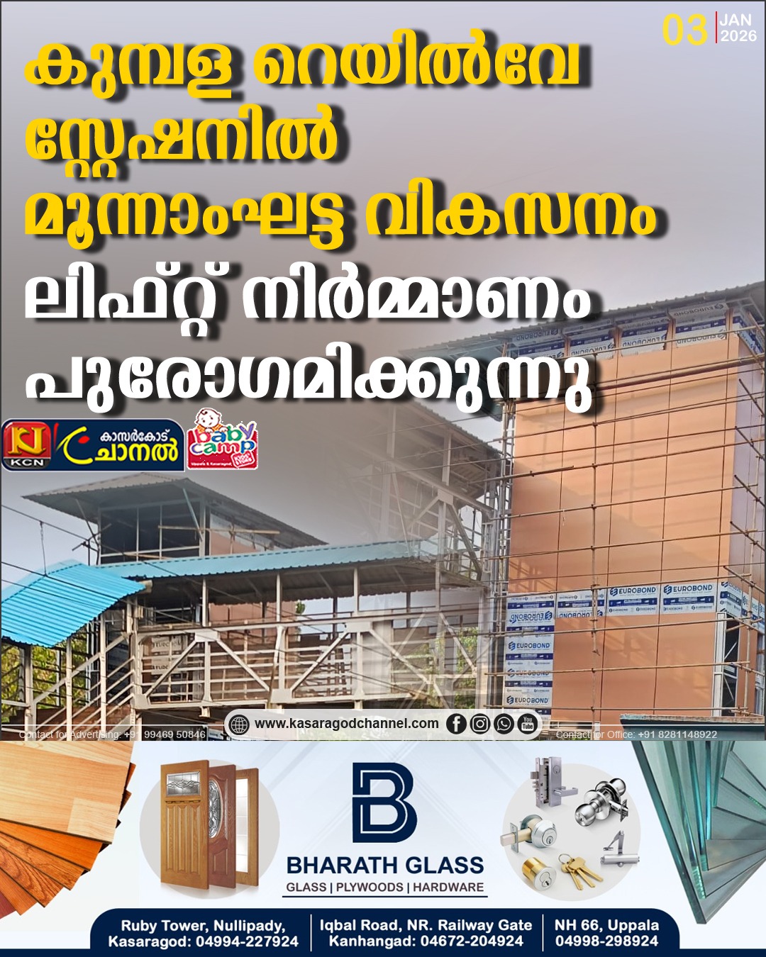 ഫോട്ടോ:കുമ്പള റെയില്വേ സ്റ്റേഷനില് പുരോഗമിക്കുന്ന ലിഫ്റ്റ് നിര്മ്മാണം.