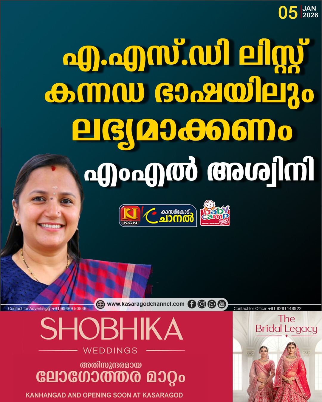 എ.എസ്.ഡി ലിസ്റ്റ് കന്നഡ ഭാഷയിലും ലഭ്യമാക്കണം : എംഎല് അശ്വിനി