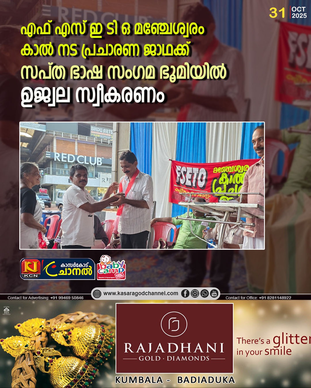 എഫ് എസ് ഇ ടി ഒ മഞ്ചേശ്വരം മേഖല കാല് നട പ്രചാരണ ജാഥക്ക് സപ്ത ഭാഷ സംഗമ ഭൂമിയില് ഉജ്വല സ്വീകരണം