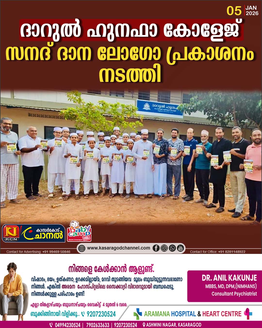 ദാറുല് ഹുനഫാ കോളേജ് സനദ് ദാന ലോഗോ പ്രകാശനം നടത്തി