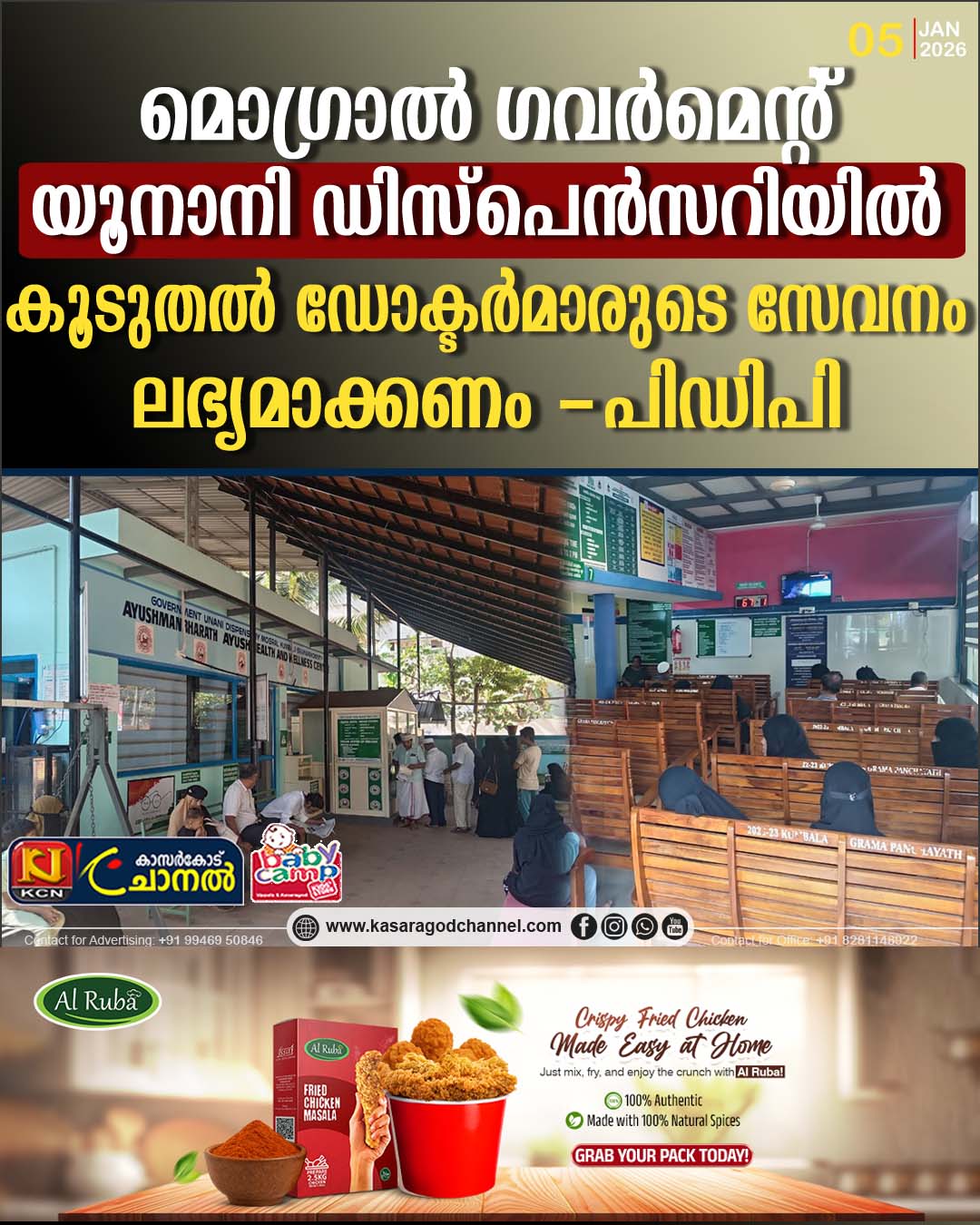 തടവ് ചികിത്സ(തെറാപ്പി) പോലെയുള്ള സൗകര്യമുള്ള മൊഗ്രാല് യൂനാനി ഡിസ്പെന്സറിയില് ആരംഭിച്ചതോടെയാണ് വലിയതോതിലുള്ള രോഗികളുടെ തിരക്ക് അനുഭവപ്പെട്ട് തുടങ്ങിയത്.എന്നാല് പലപ്പോഴും ഡോക്ടര്മാരുടെ അഭാവം മണിക്കൂറുകളോളം കാത്തു നില്ക്കേണ്ടി വരുന്നത് രോഗികളെ പ്രയാസത്തിലാകുന്നുണ്ടെന്നും,കൂടുതല് ഡോക്ടര്മാരുടെ സേവനം മൊഗ്രാല് യൂനാനി ഡിസ്പെന്സറിയില് ലഭ്യമാക്കണമെന്ന് പിഡിപി കുമ്പള പഞ്ചായത്ത് ഭാരവാഹികള് ബന്ധപ്പെട്ട അധികൃതരോട് ആവശ്യപ്പെട്ടു.