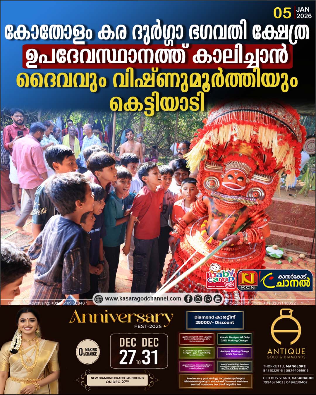 കോതോളം കര ദുര്ഗ്ഗാ ഭഗവതി ക്ഷേത്ര ഉപദേവസ്ഥാനത്ത് കാലിച്ചാന് ദൈവവും വിഷ്ണുമൂര്ത്തിയും കെട്ടിയാടി.